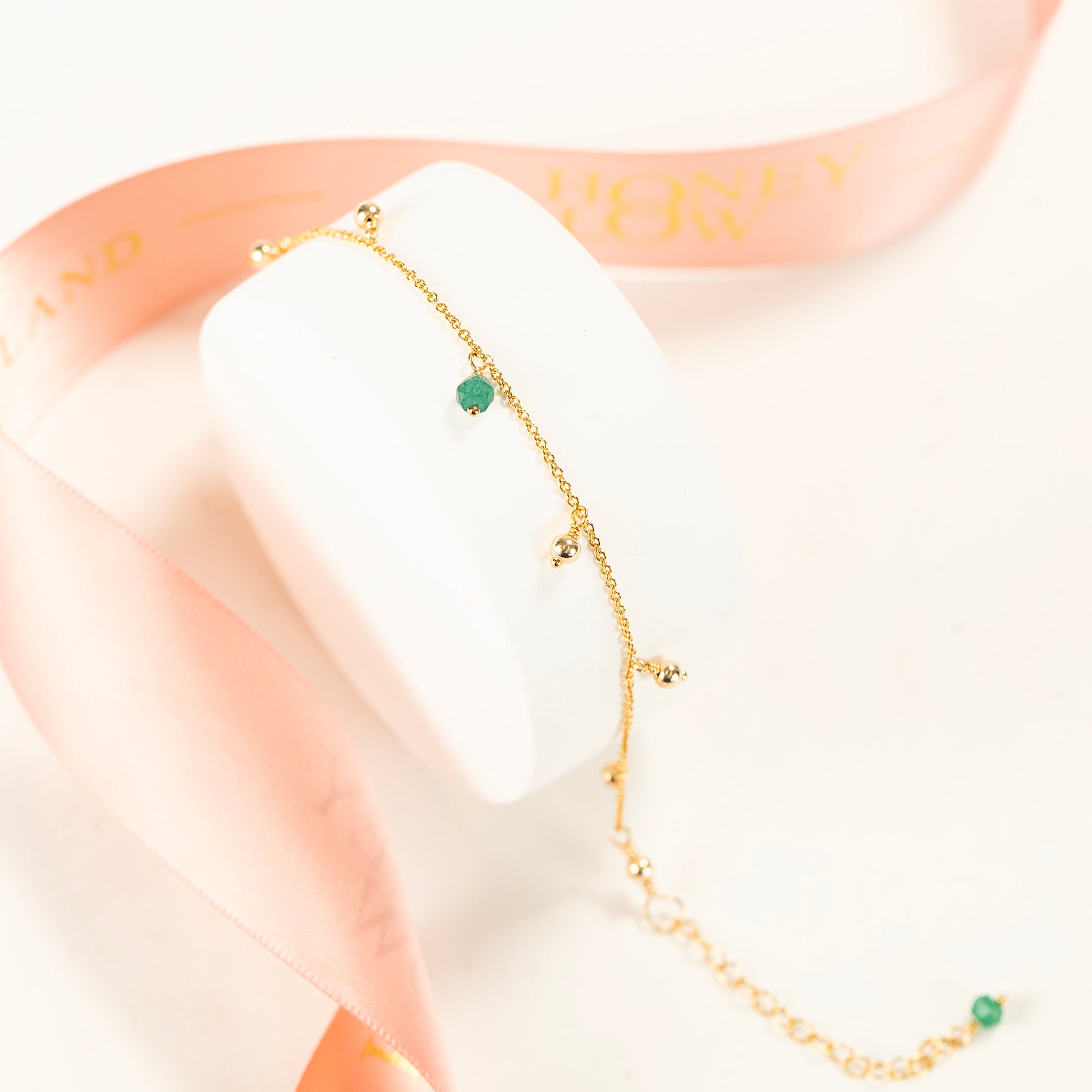 May Birthday Gift - Delicate Double Birthstone Bracelet - Emerald - Silver & Gold