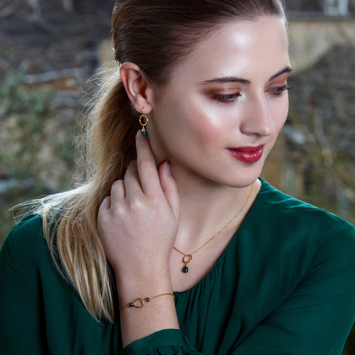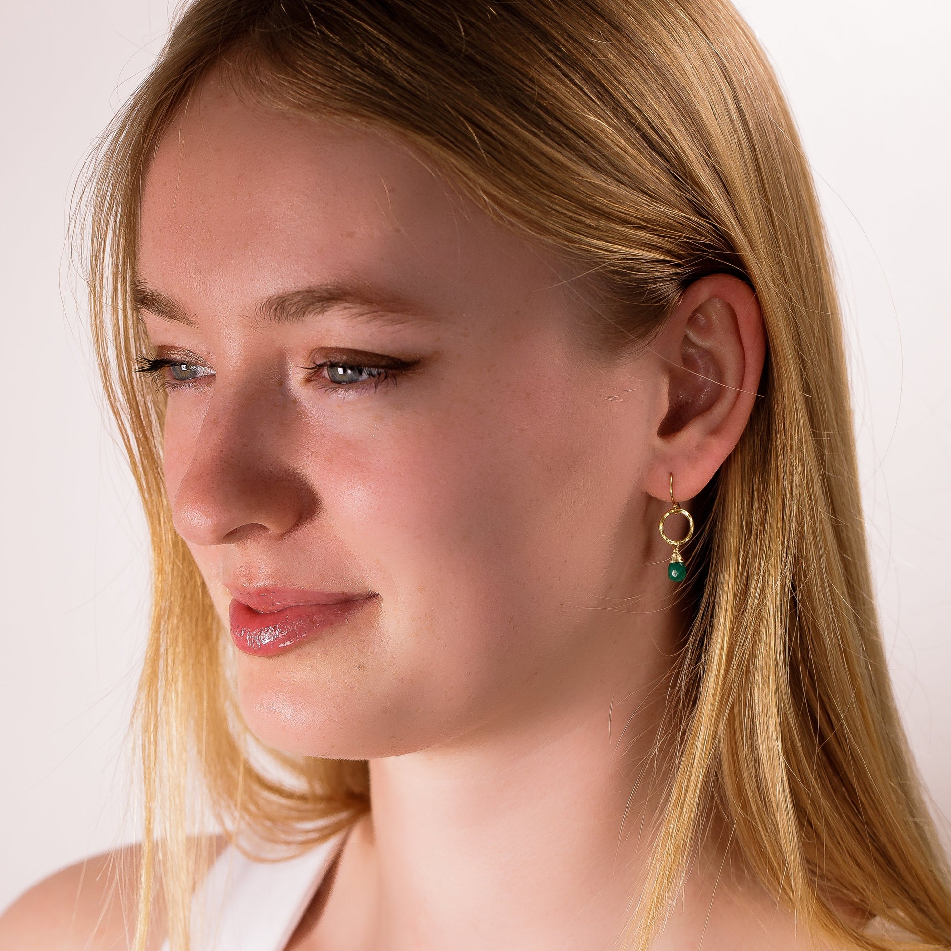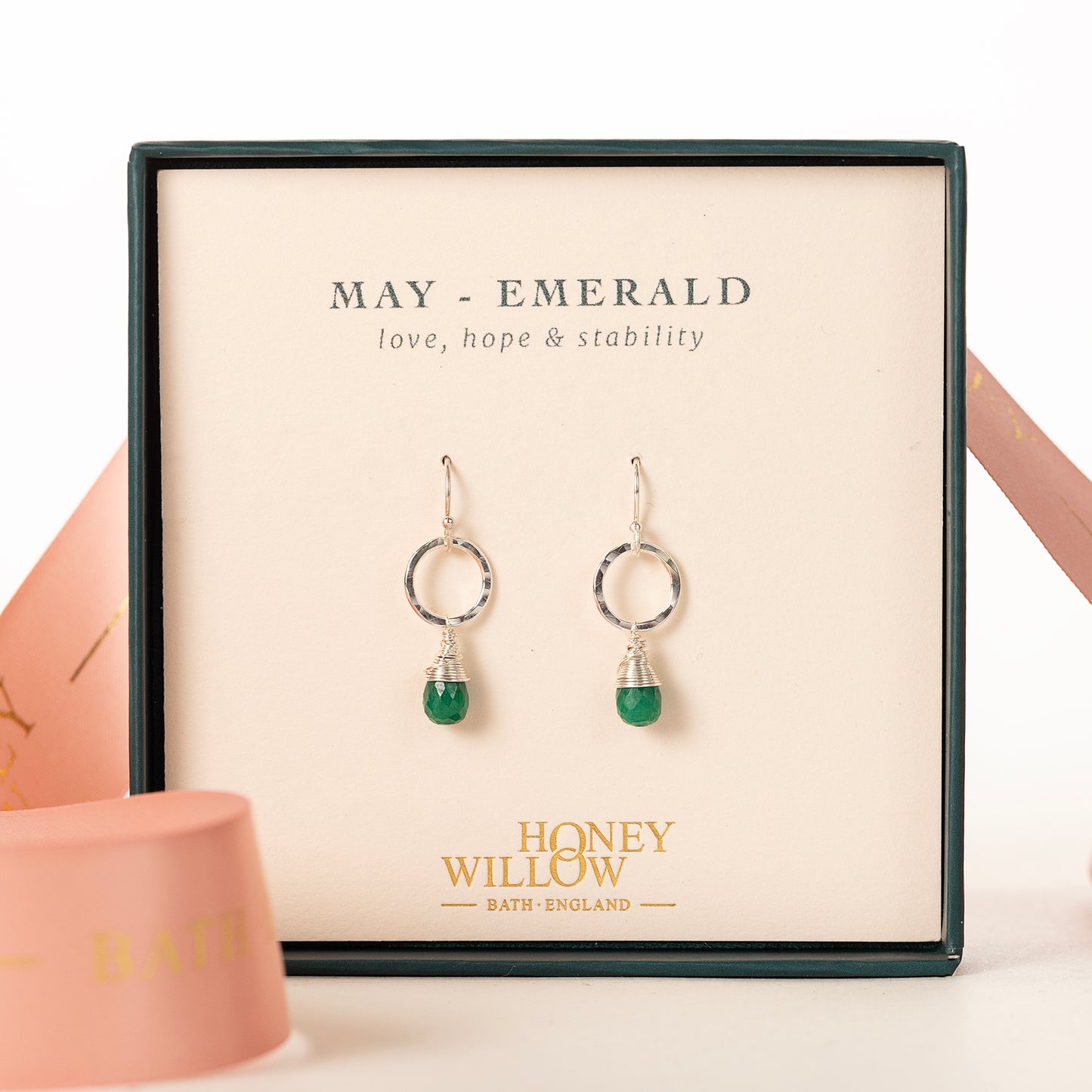 May Birthstone Circle Earrings - Emerald - Silver & Gold