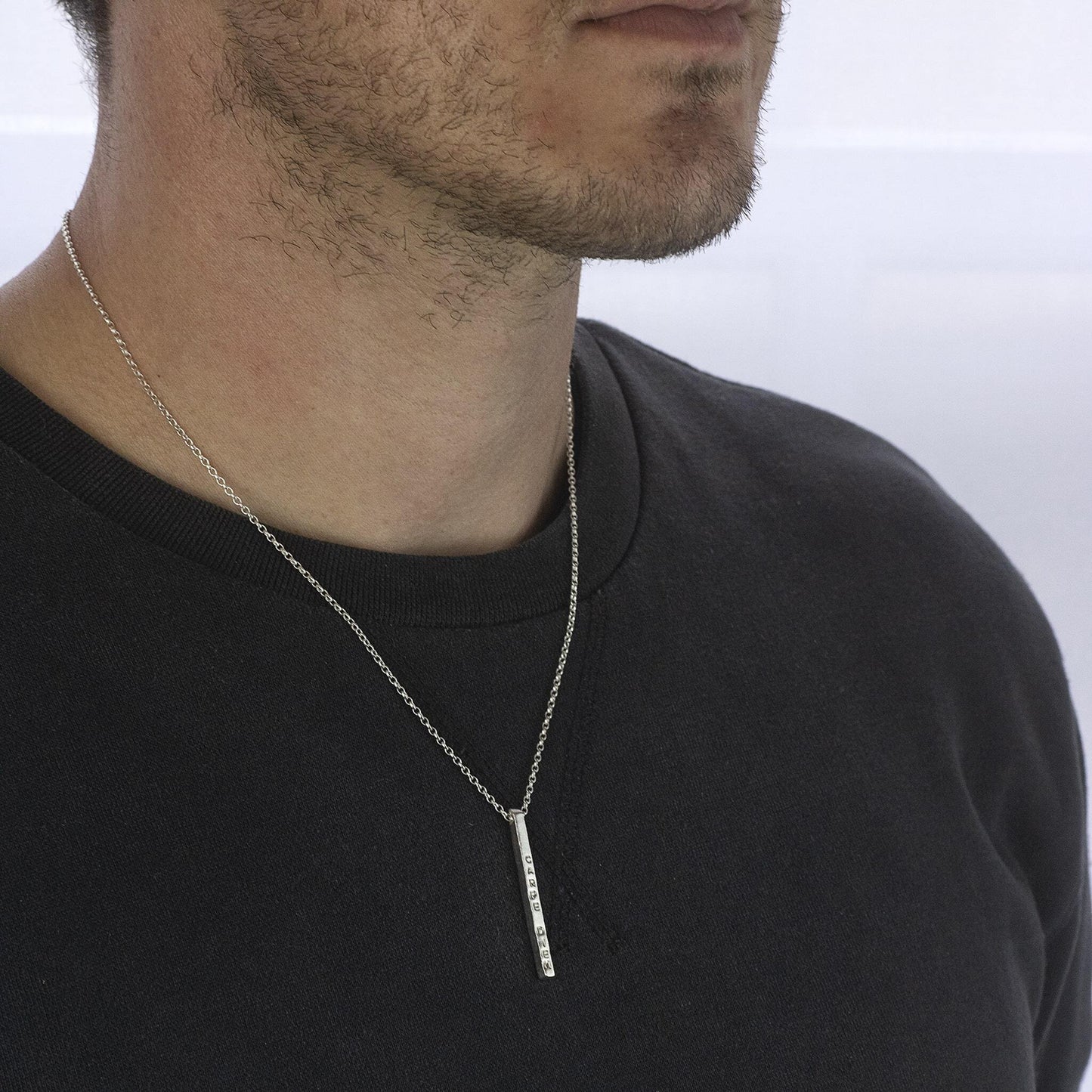 Celebrate his family with a silver column necklace, hand-stamped with the names of his loved ones.