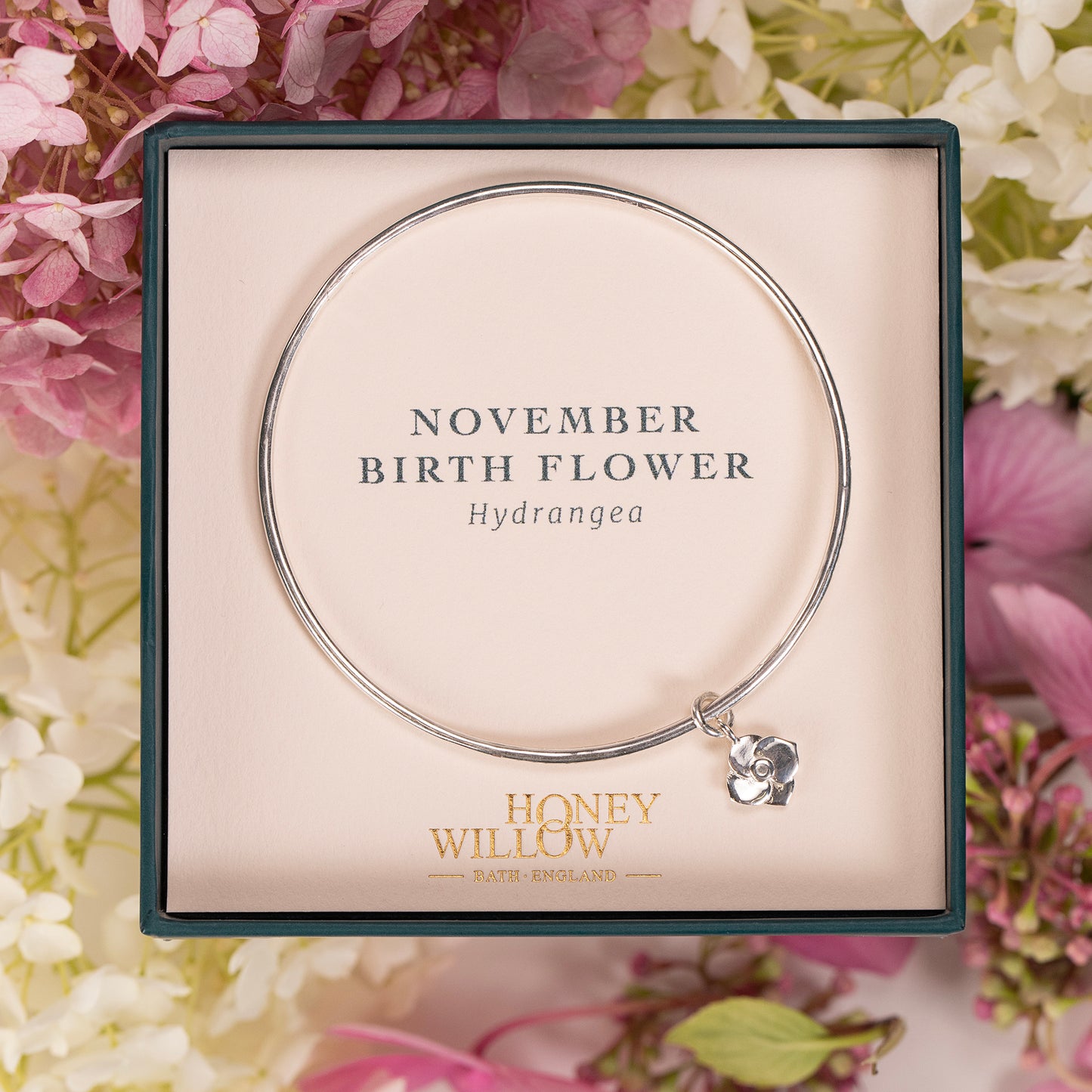 Celebrate her birth month with a personalised bangle handmade with her birth flower.