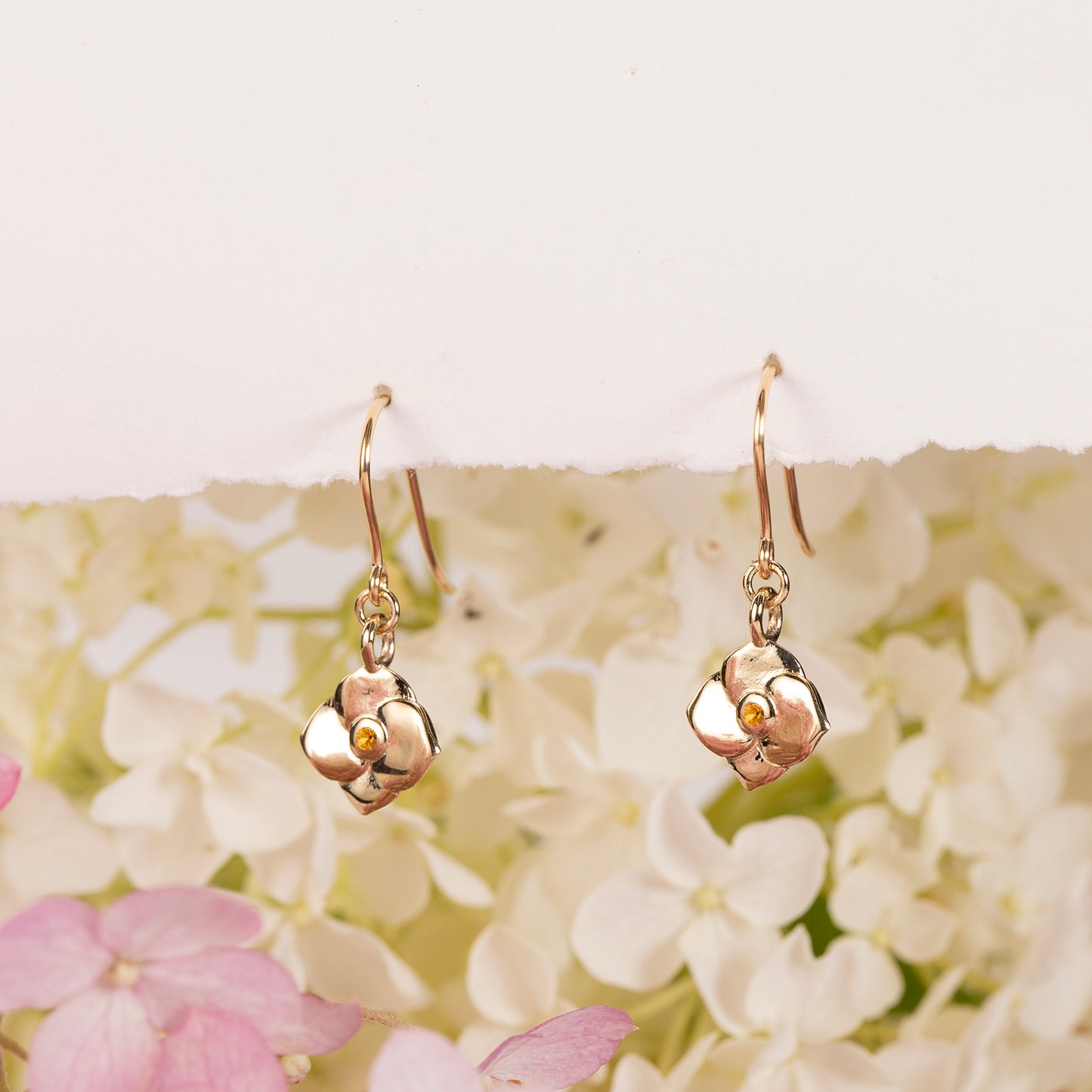 November Birth Flower & Birthstone Earrings - Hydrangea - 9kt Gold