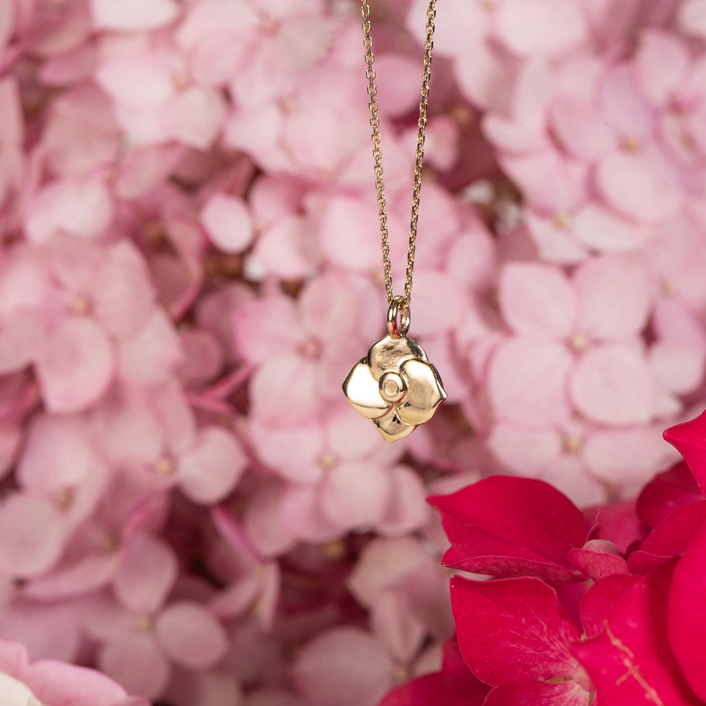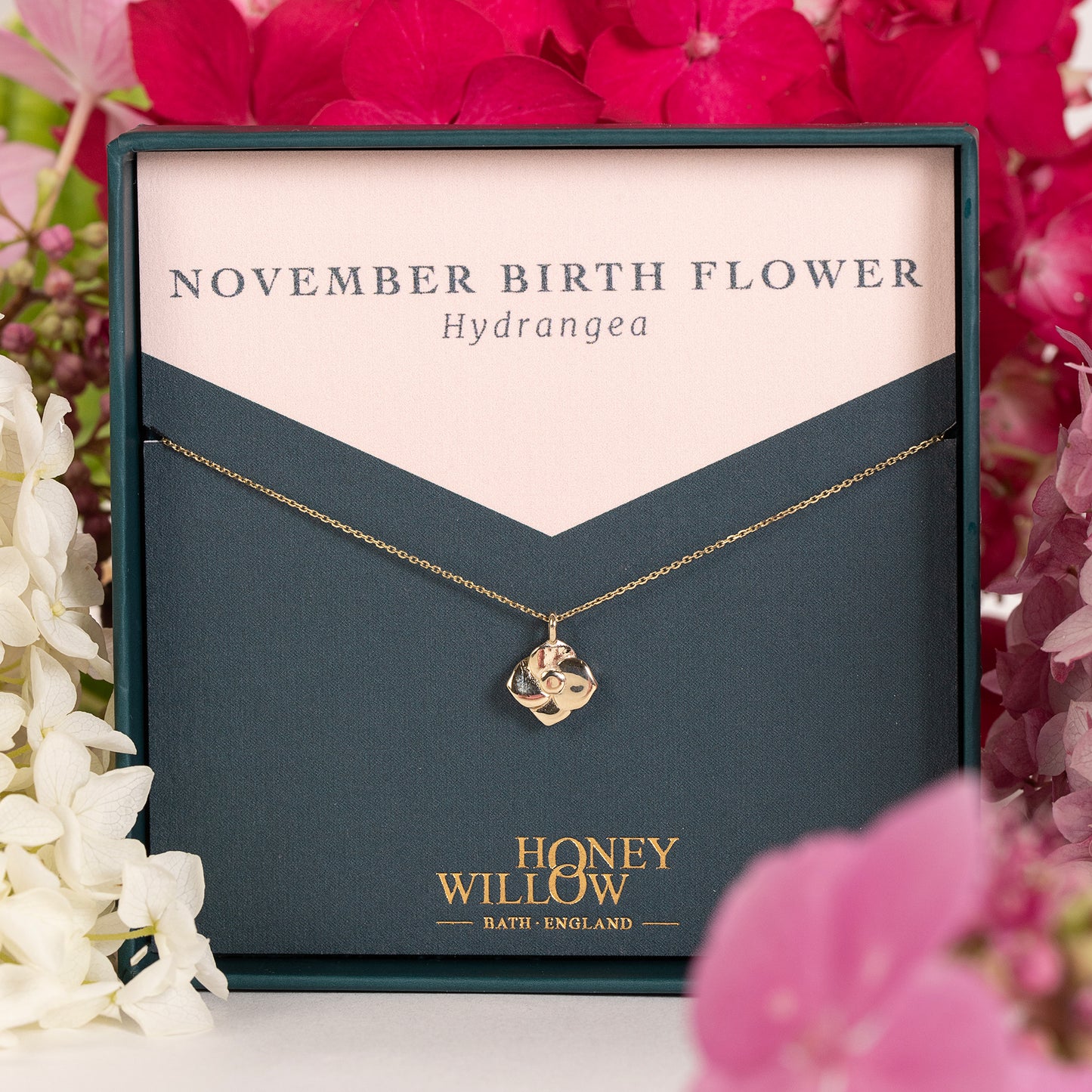November Birth Flower Necklace - Hydrangea - 9kt Gold