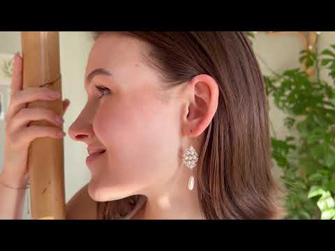 These unique statement earrings are handmade with large pear-shaped pearls. Freshwater pearls and tiny seed pearls form a delicate lace-effect diamond.