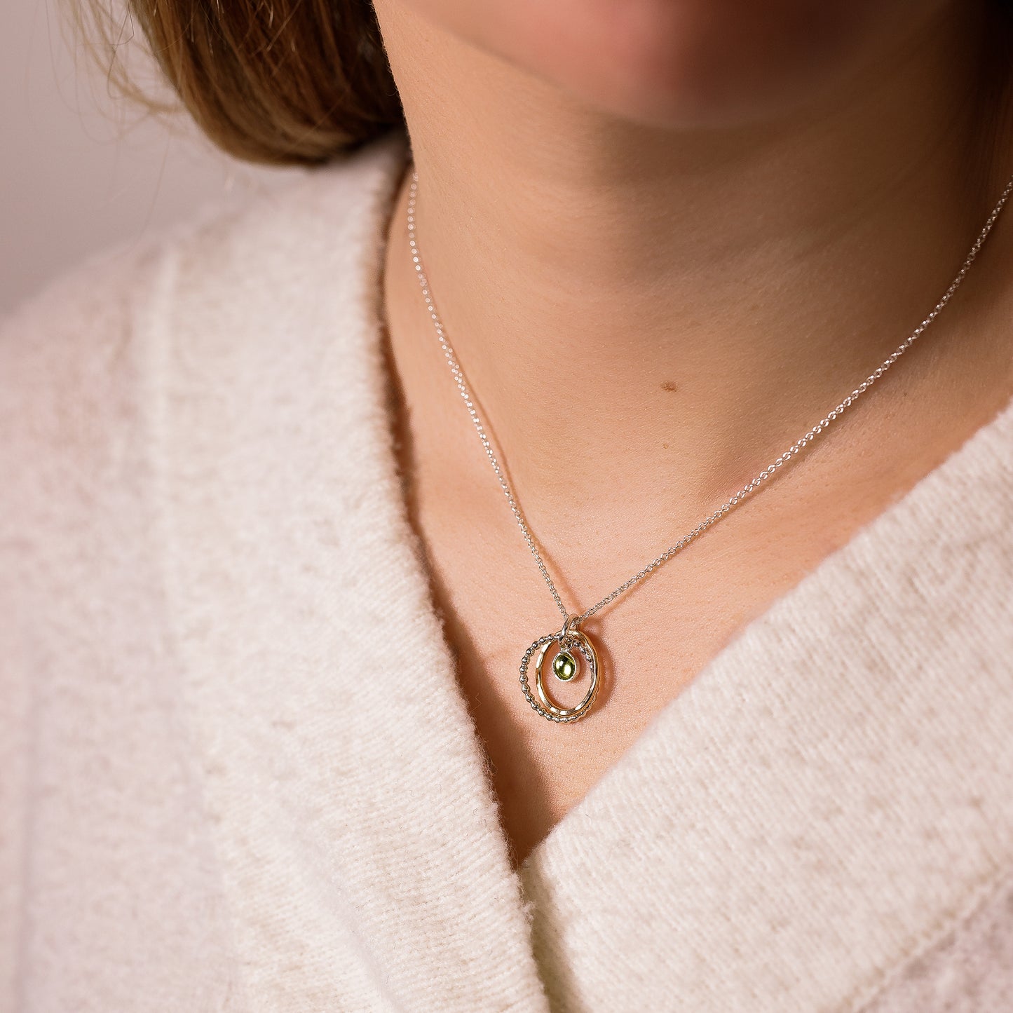 Peridot Double Link Necklace - Friendship - Silver & Gold