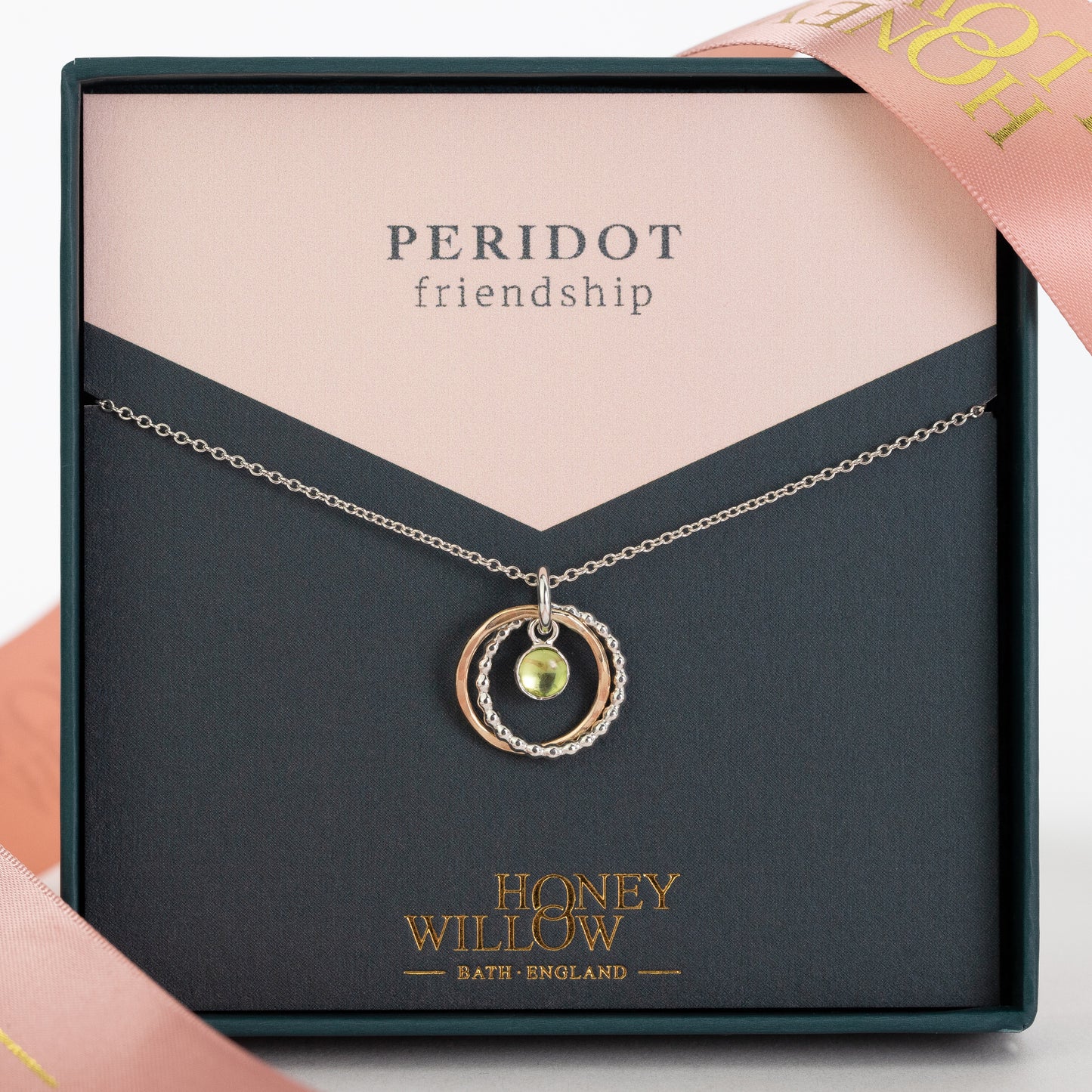 Give her a double link necklace handmade with peridot, which symbolises friendship.