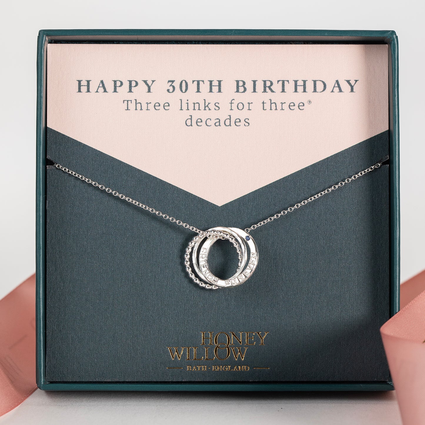 Personalised 30th Birthday Birthstone Necklace - The Original 3 Links for 3 Decades - Silver