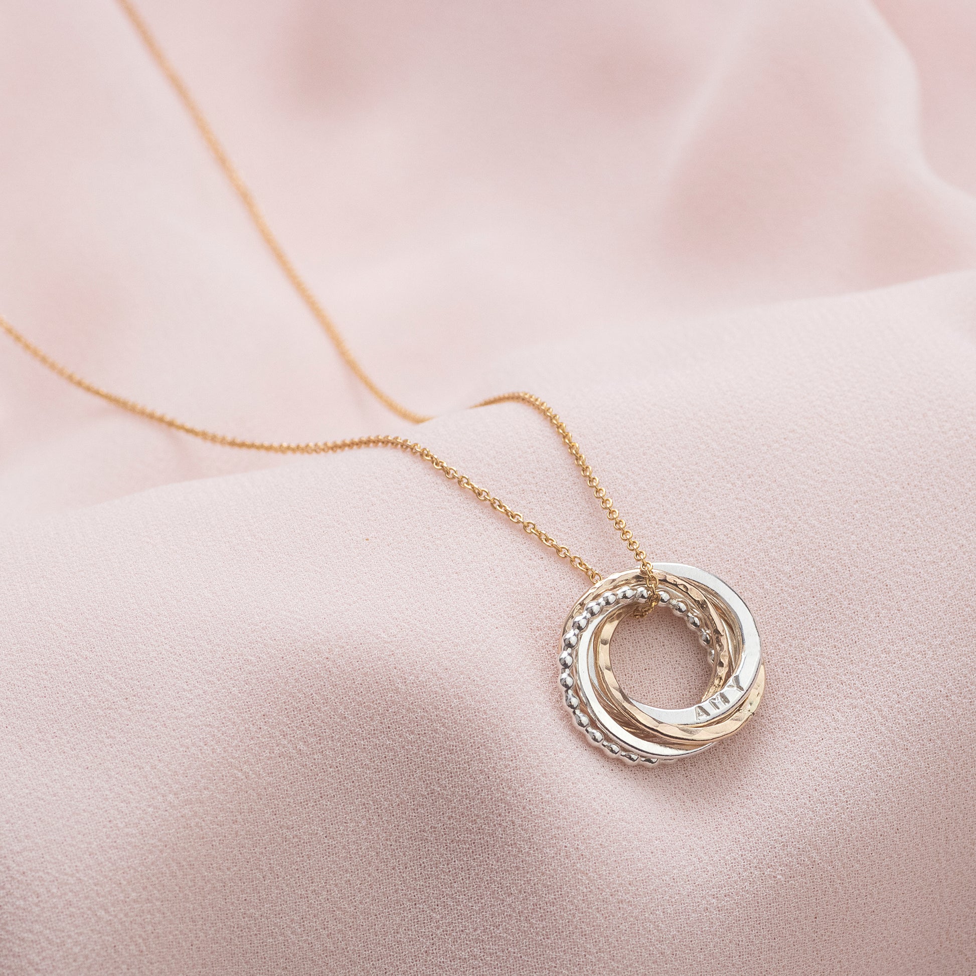 Personalised 5th Anniversary Necklace - The Original 5 Rings for 5 Years - Petite Silver & Gold
