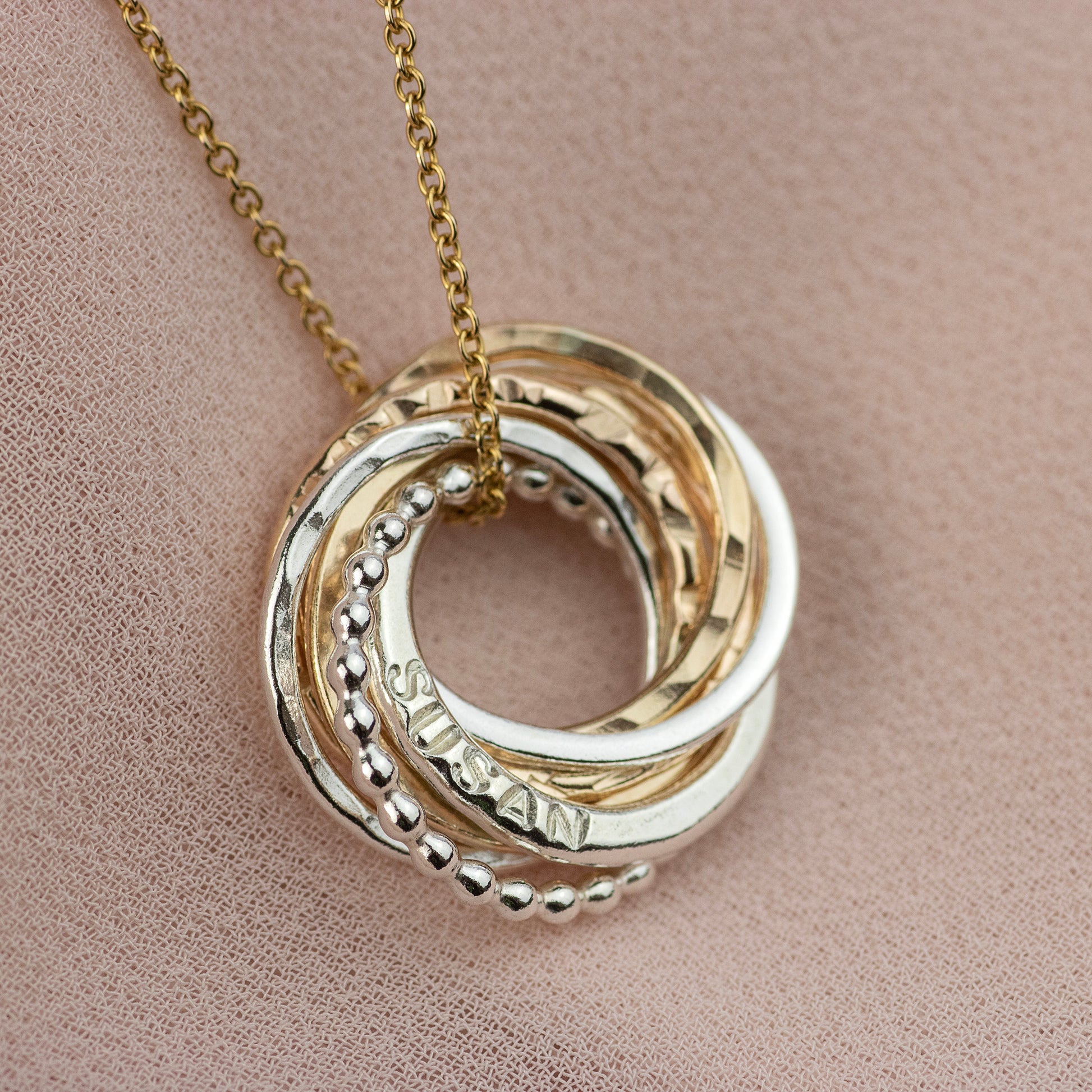 Personalised 8th Anniversary Necklace - Hand-Stamped - The Original 8 Rings for 8 Years Necklace - Petite Silver & Gold