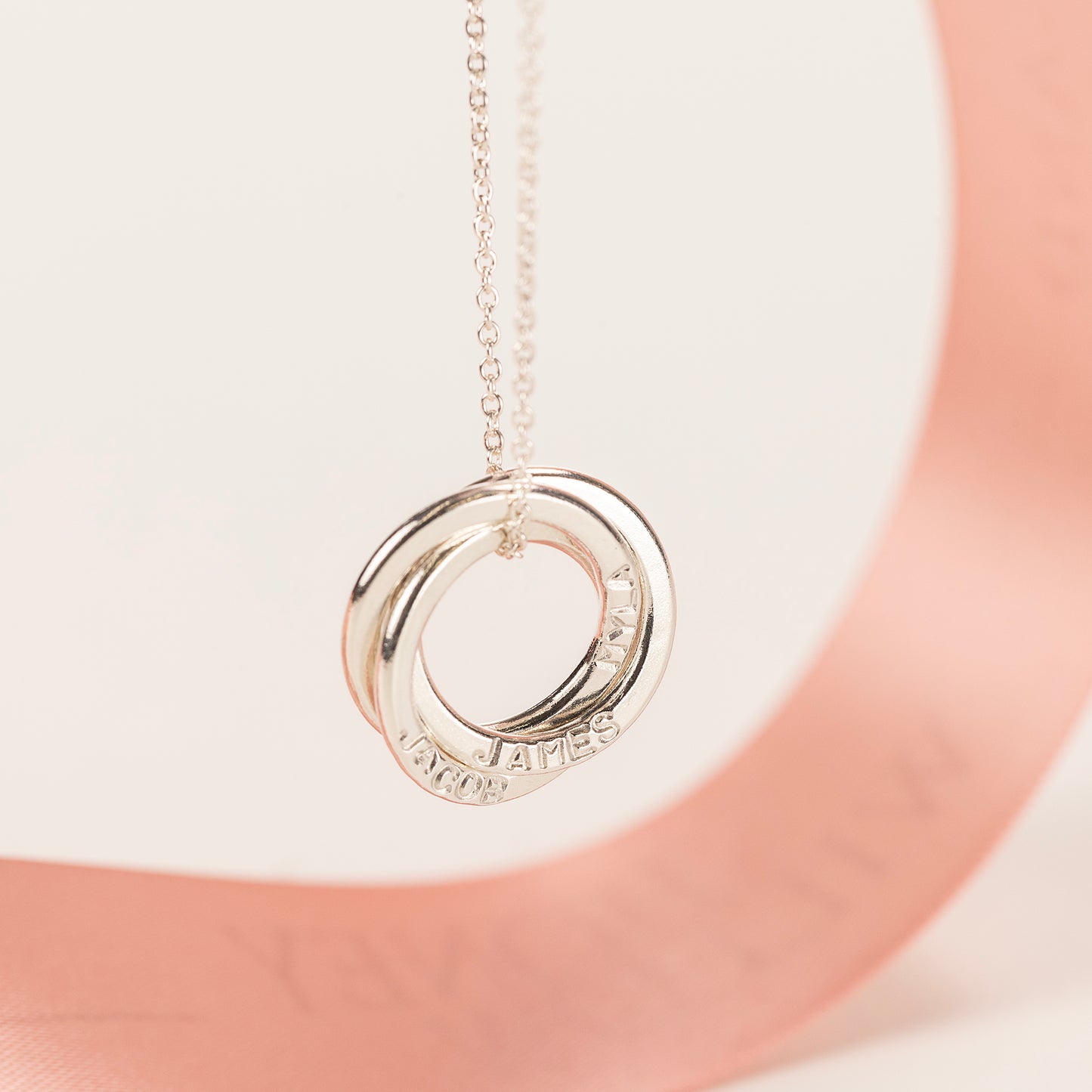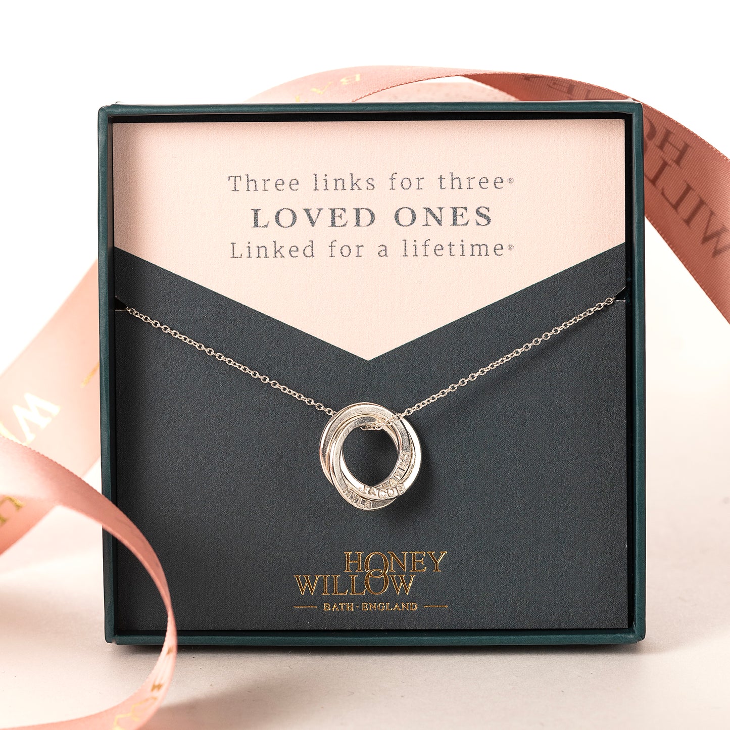 Celebrate her family with a personalised three links for three® loved ones necklace.