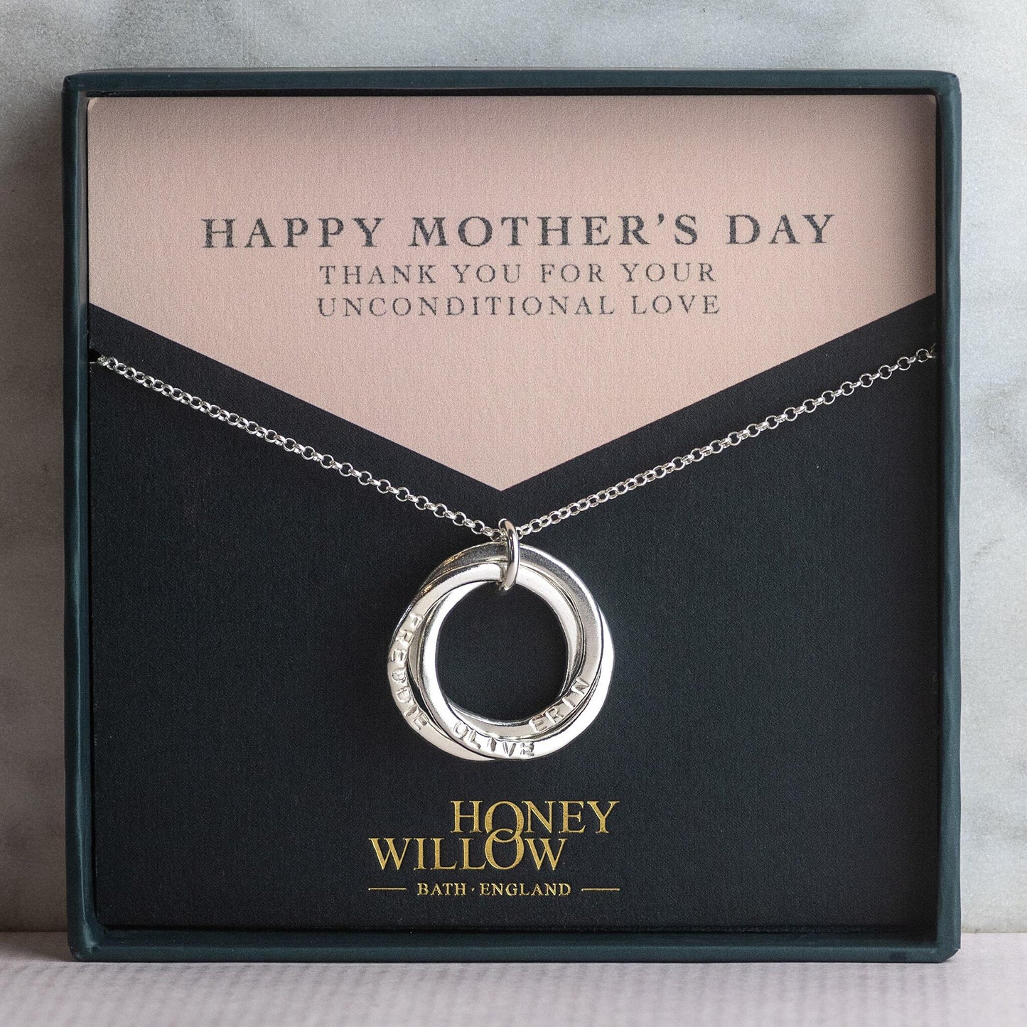 Celebrate her family with a personalised three links for three® loved ones necklace.