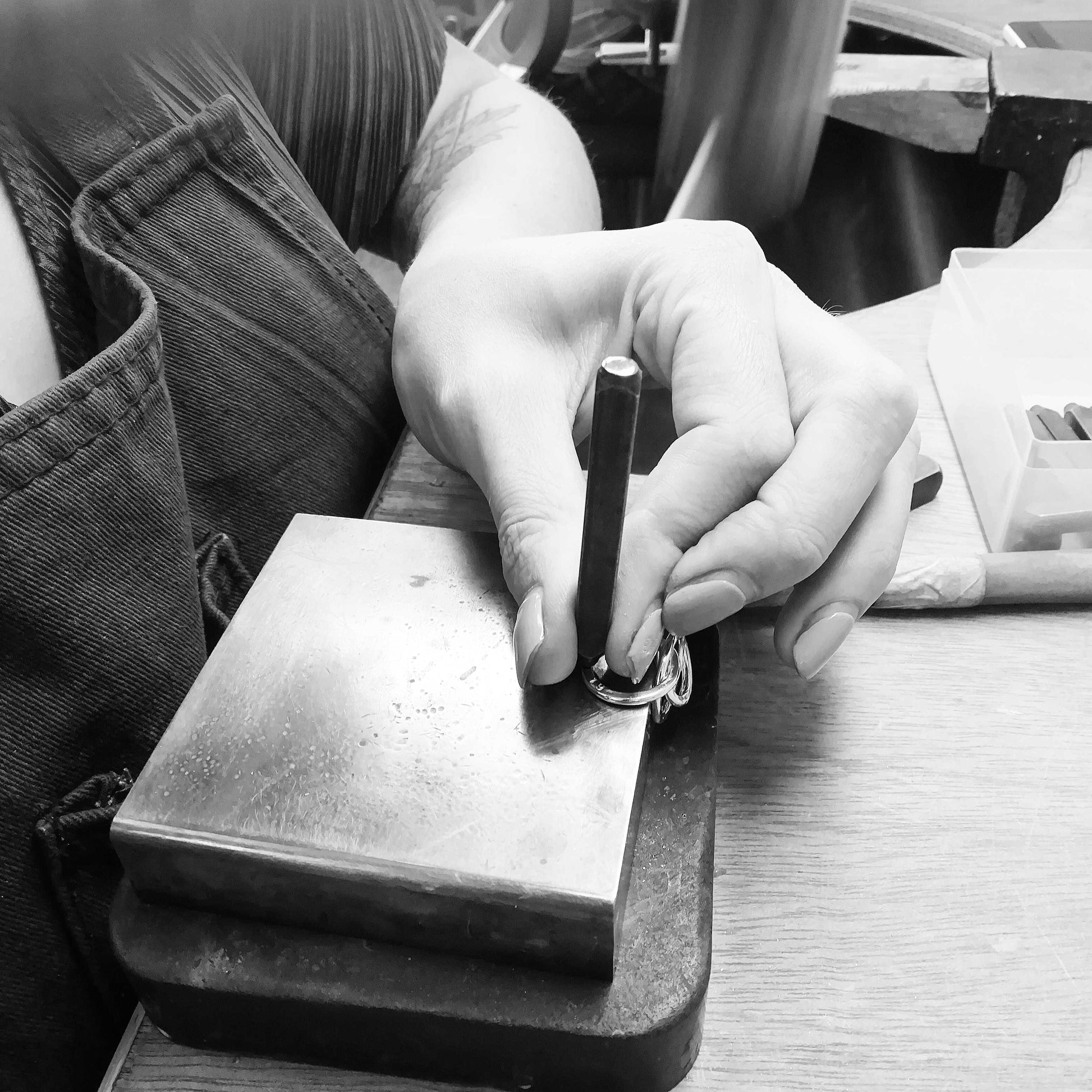 Circles symbolise infinite love, protection and unity. Three circles are linked for a lifetime®. Each link is hand-stamped with the name, date or word that is meaningful to her.
