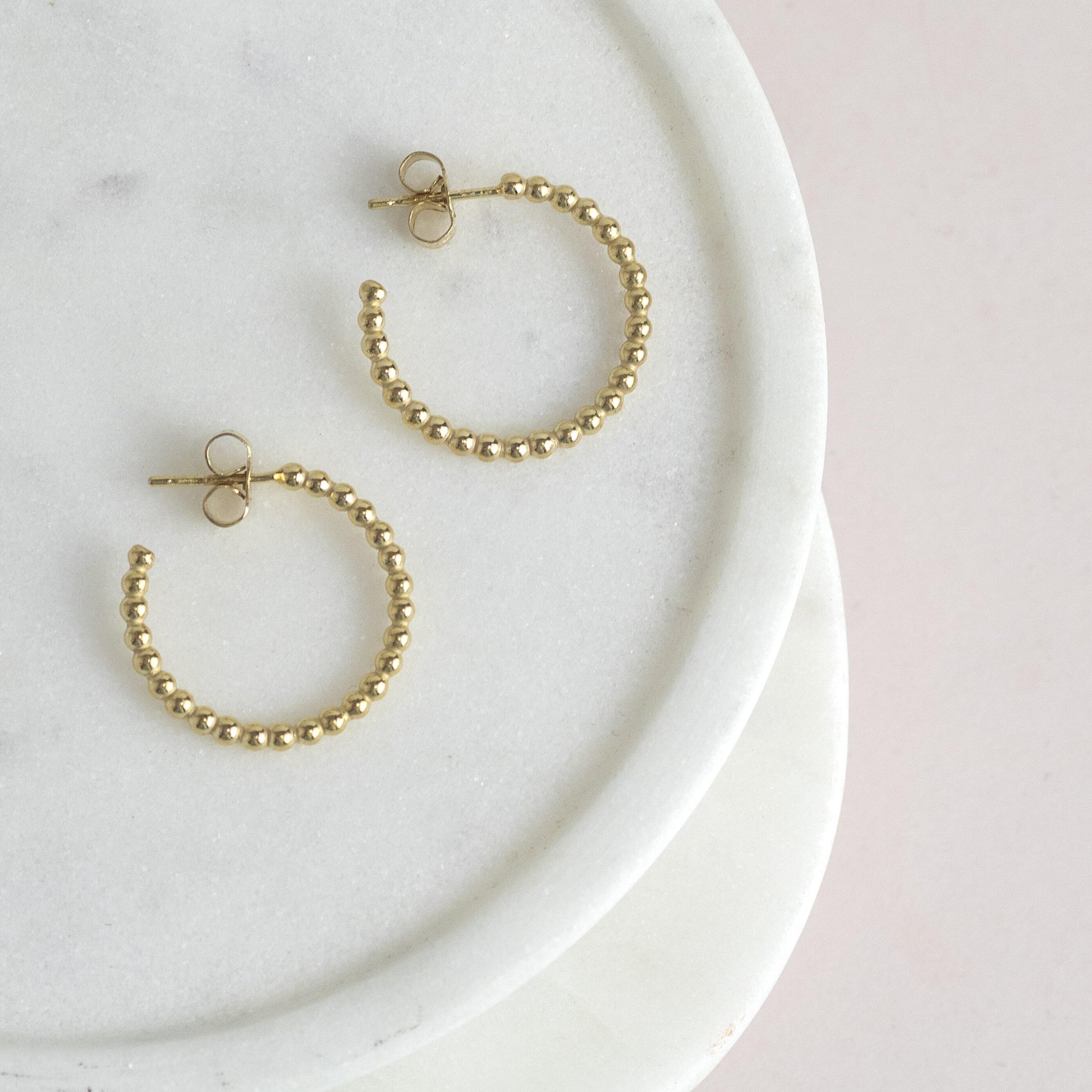 These petite hoop earrings are handmade with 14k gold-fill. They are 2cm in diameter.