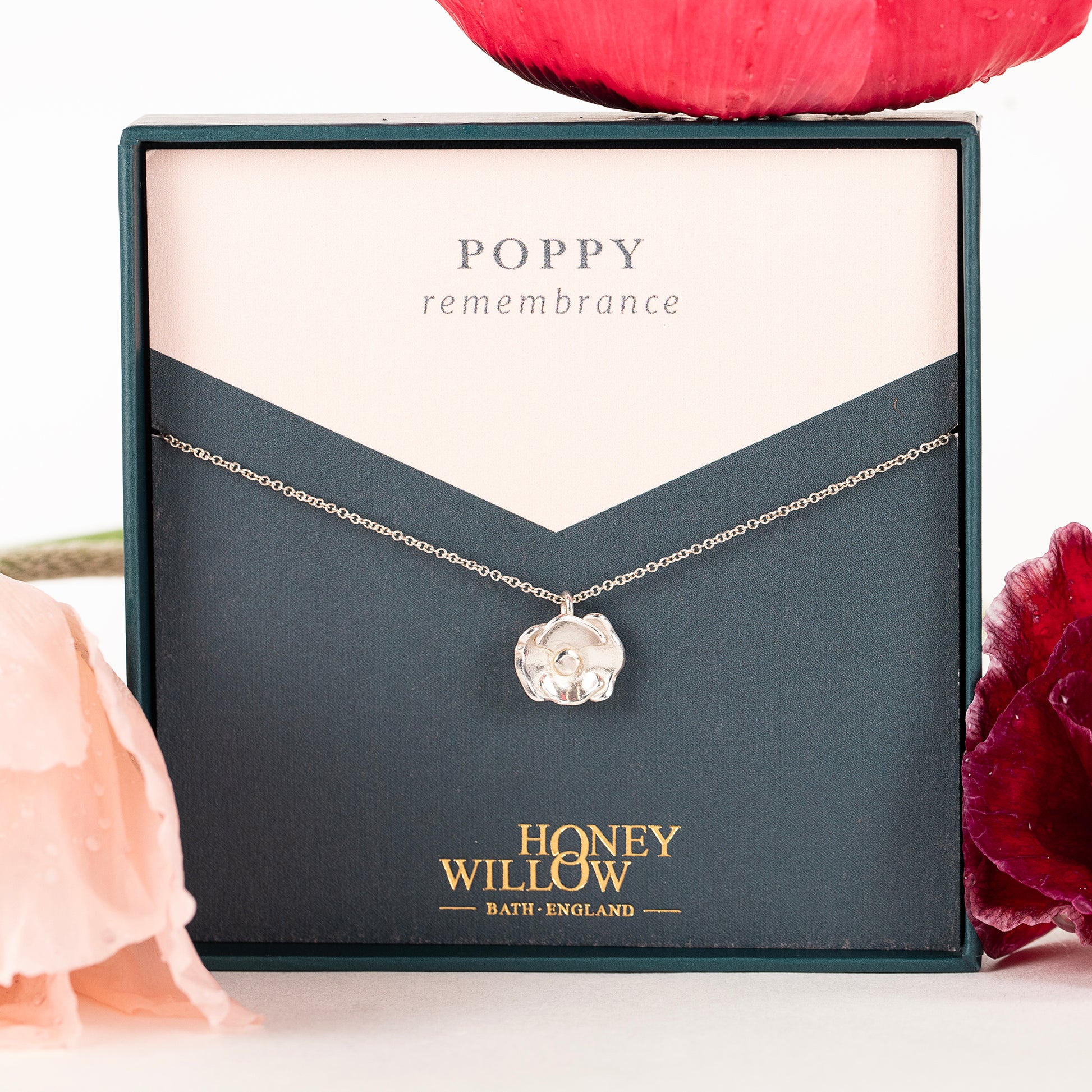 Poppy Flower Necklace - Remembrance - Silver
