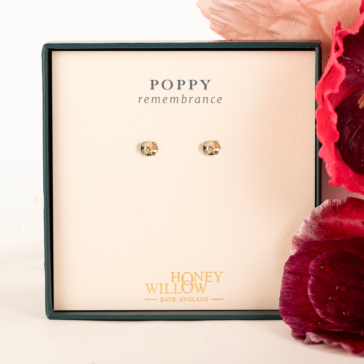 Poppy Flower Stud Earrings - Remembrance - 9kt Gold