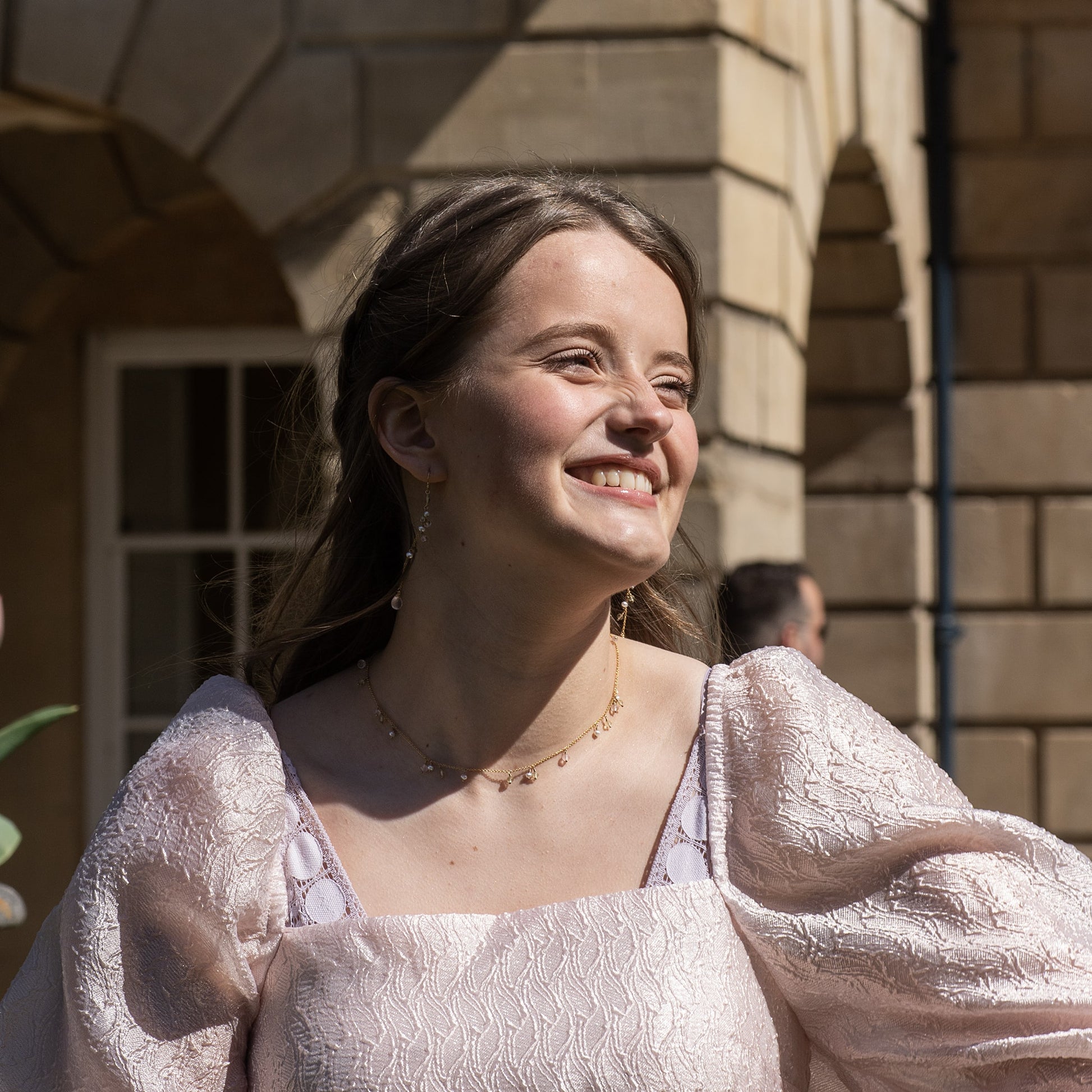 Lemon quartz symbolises creativity, rose quartz symbolises unconditional love and pearls symbolise wisdom.