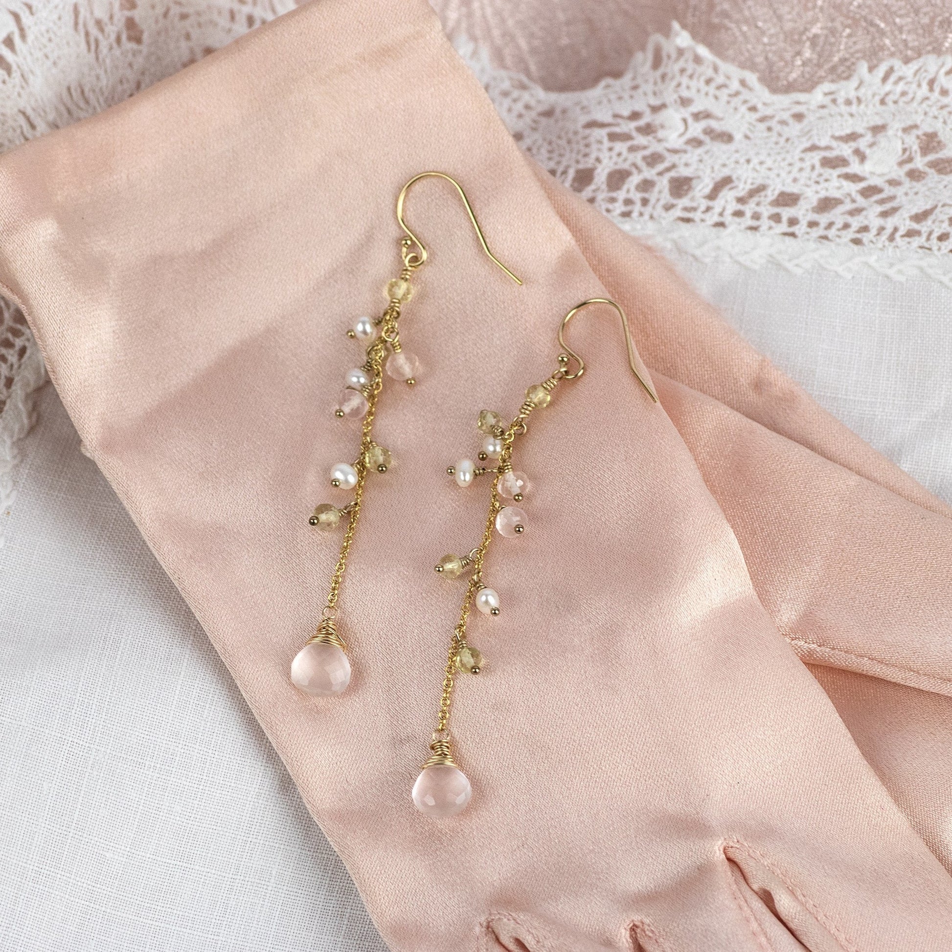Quartz & Pearl Long Earrings - Bridgerton Inspired - Penelope