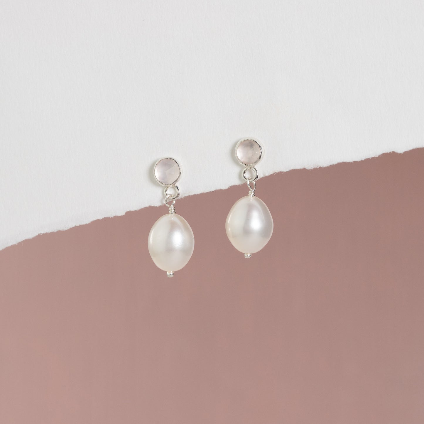 Rose Quartz & Pearl Earrings - Silver & Gold