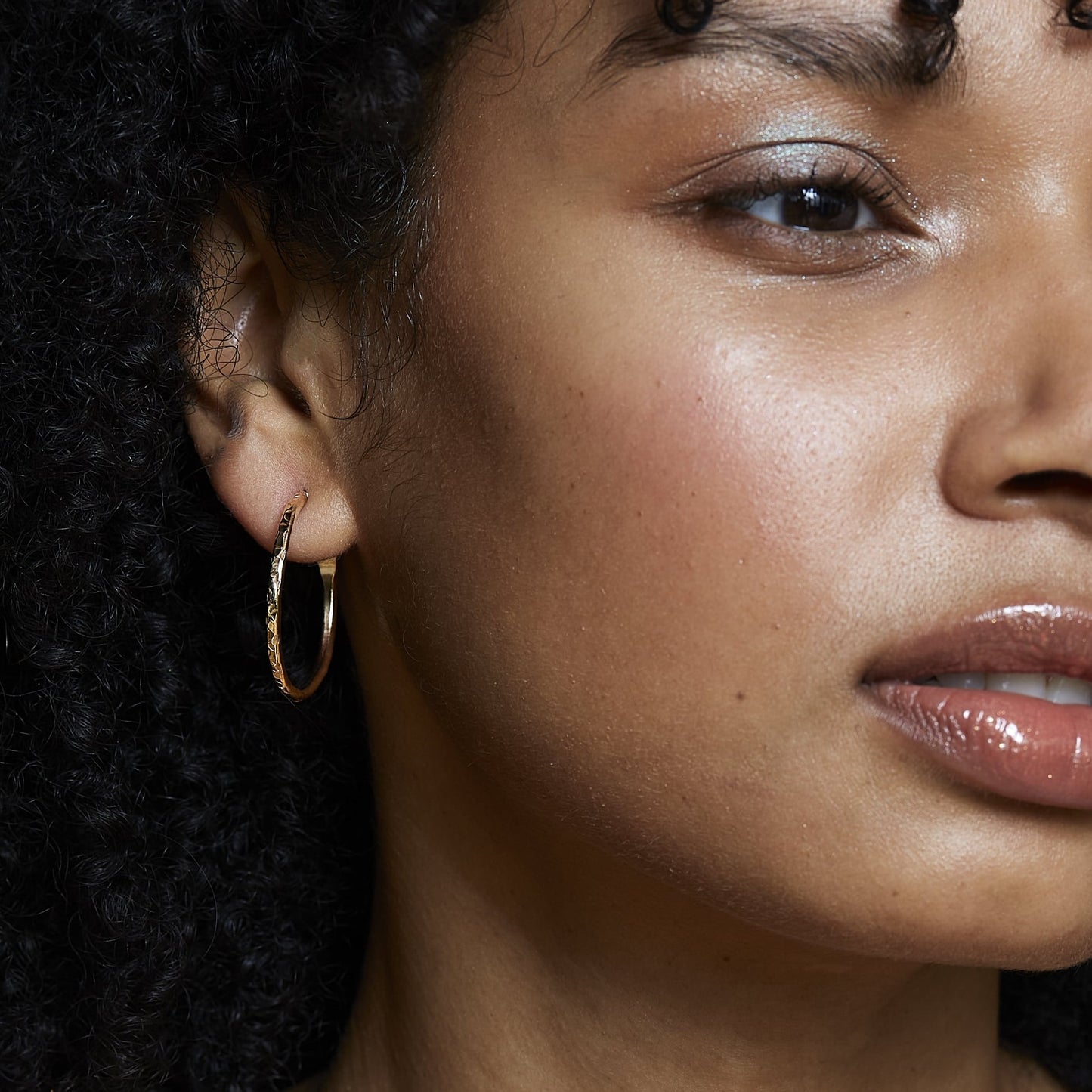 These chunky 14k gold-fill hoop earrings are 3cm in diameter.