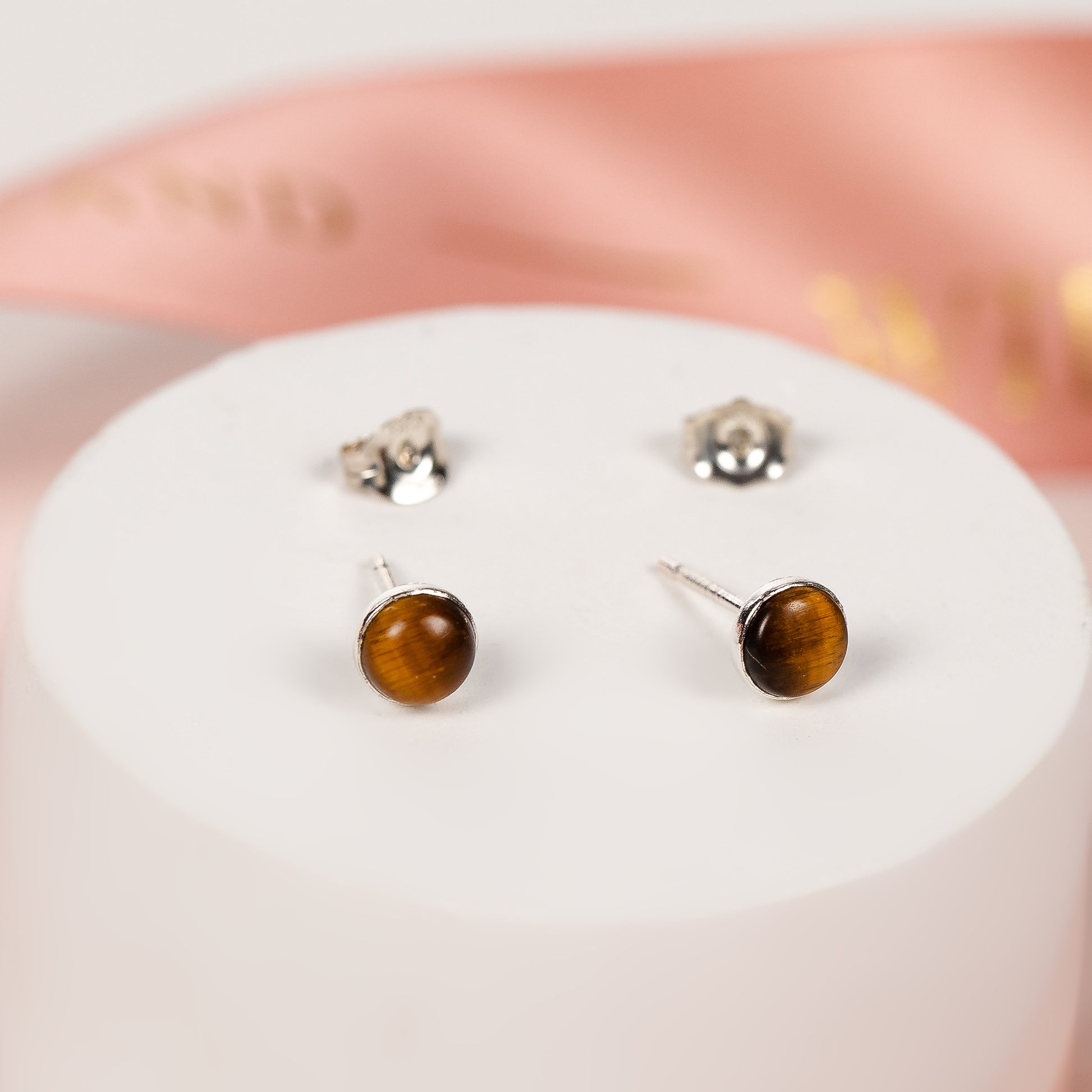 These stud earrings are handmade with tigers eye stones, which symbolise protection.