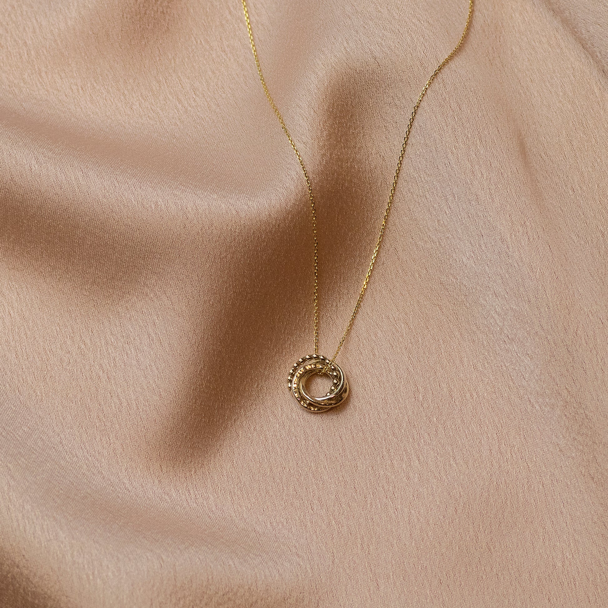 Circles symbolise infinite love, strength, protection and unity. We make her pendant with four linked circles, giving each link a different texture to represent each year.