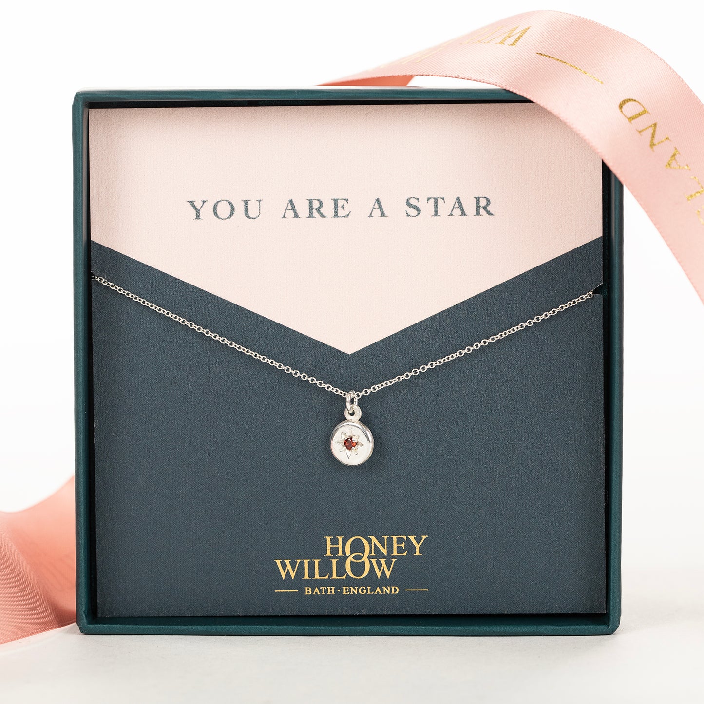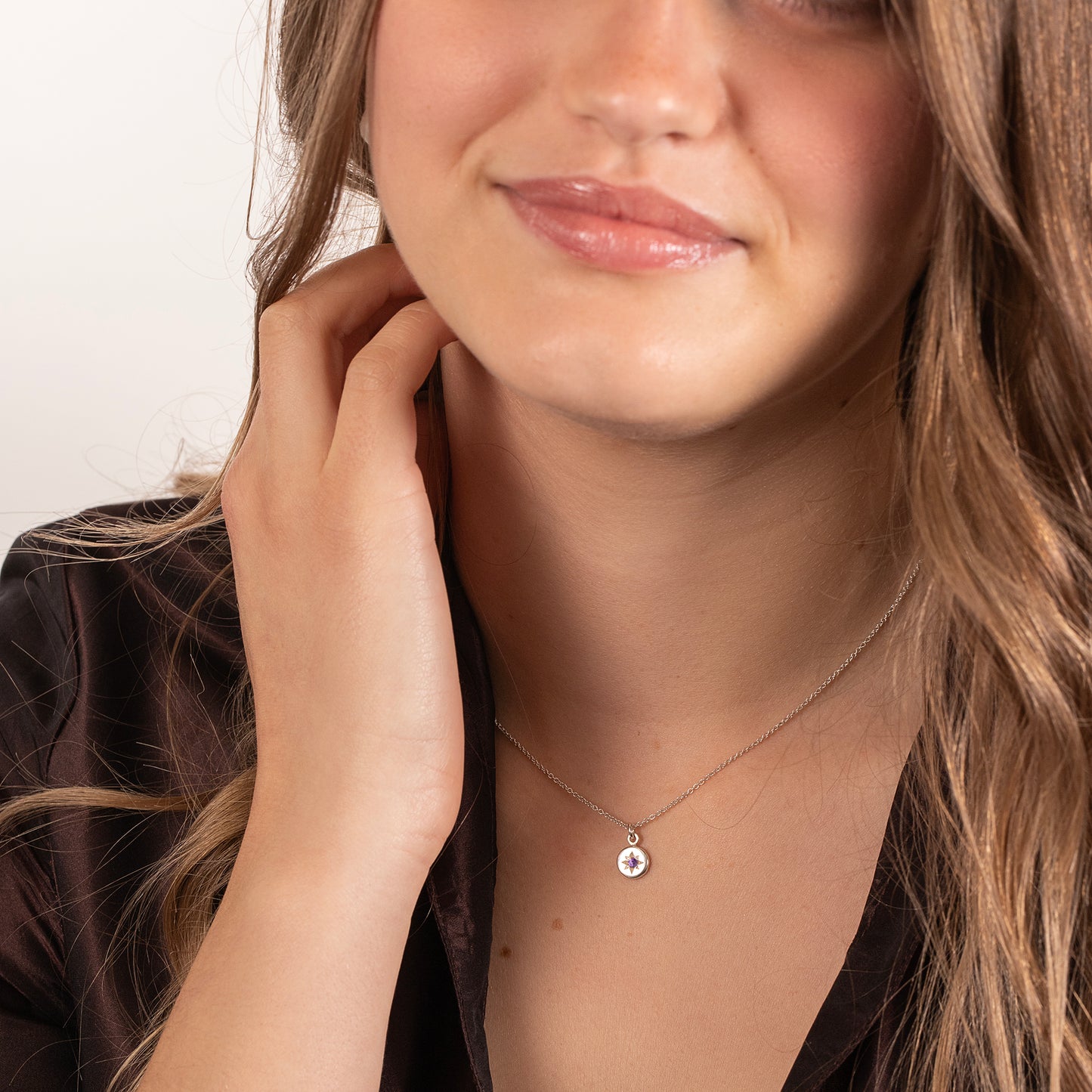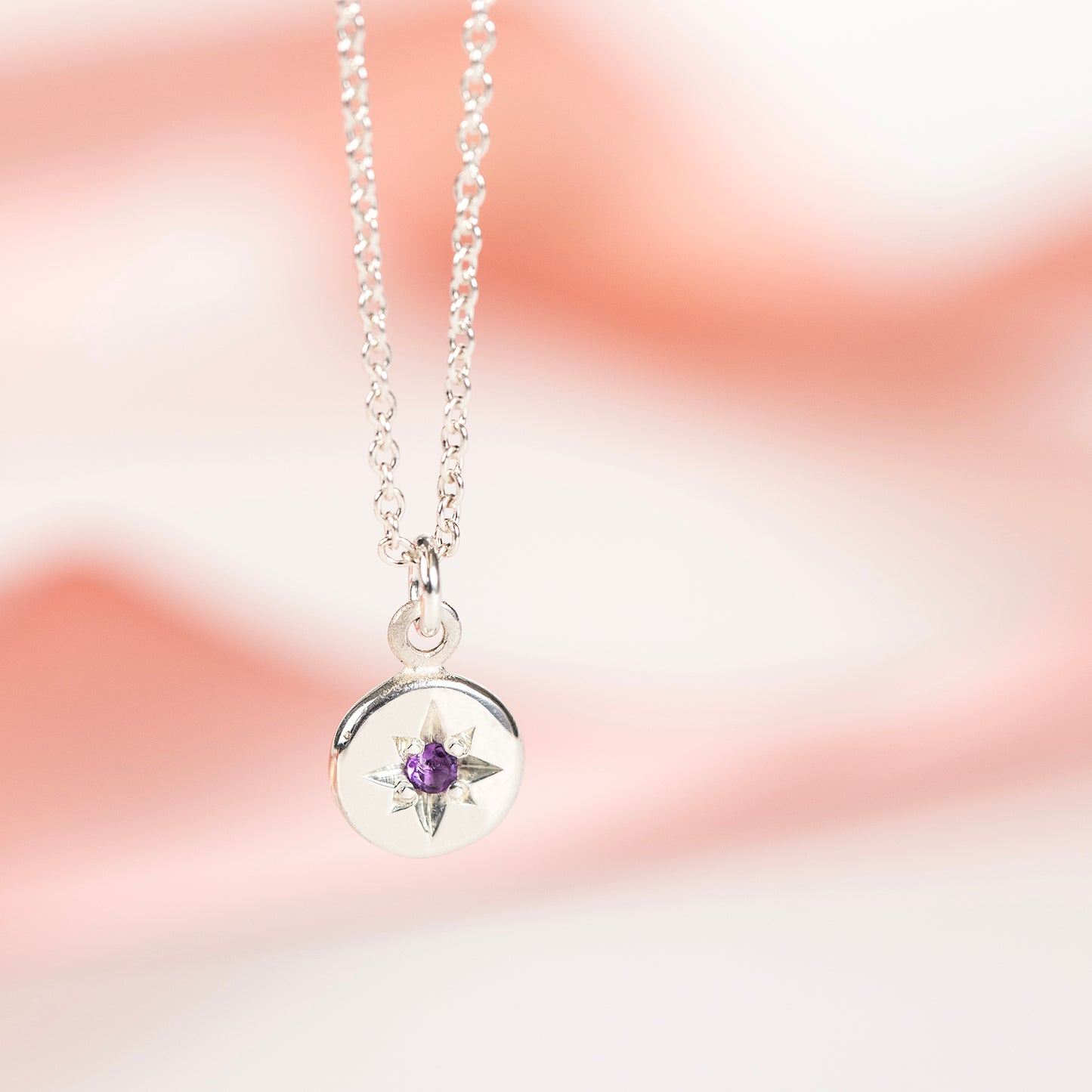 Celebrate her with a dainty sterling silver pendant, star set with her birthstone.