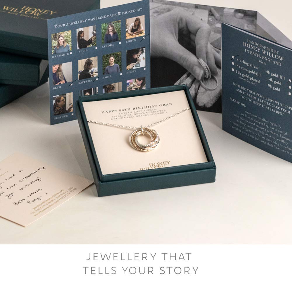 Give her a two links for two® twins necklace, handmade in Bath, England. Honey Willow is a family business, founded in 2010.