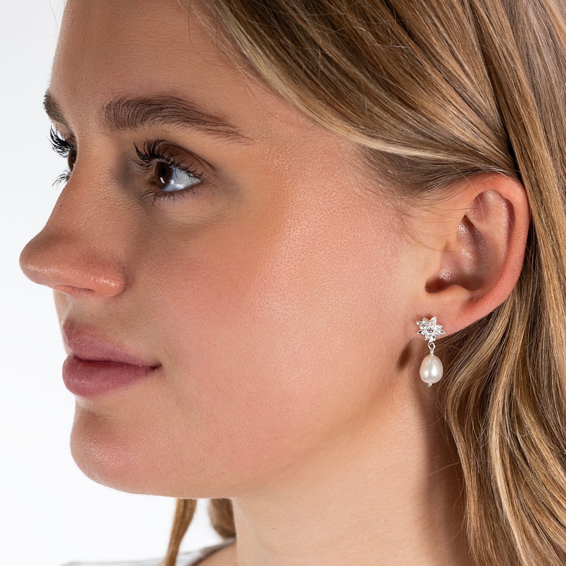 Waterlily Flower Earrings - Energy - Silver & Pearl