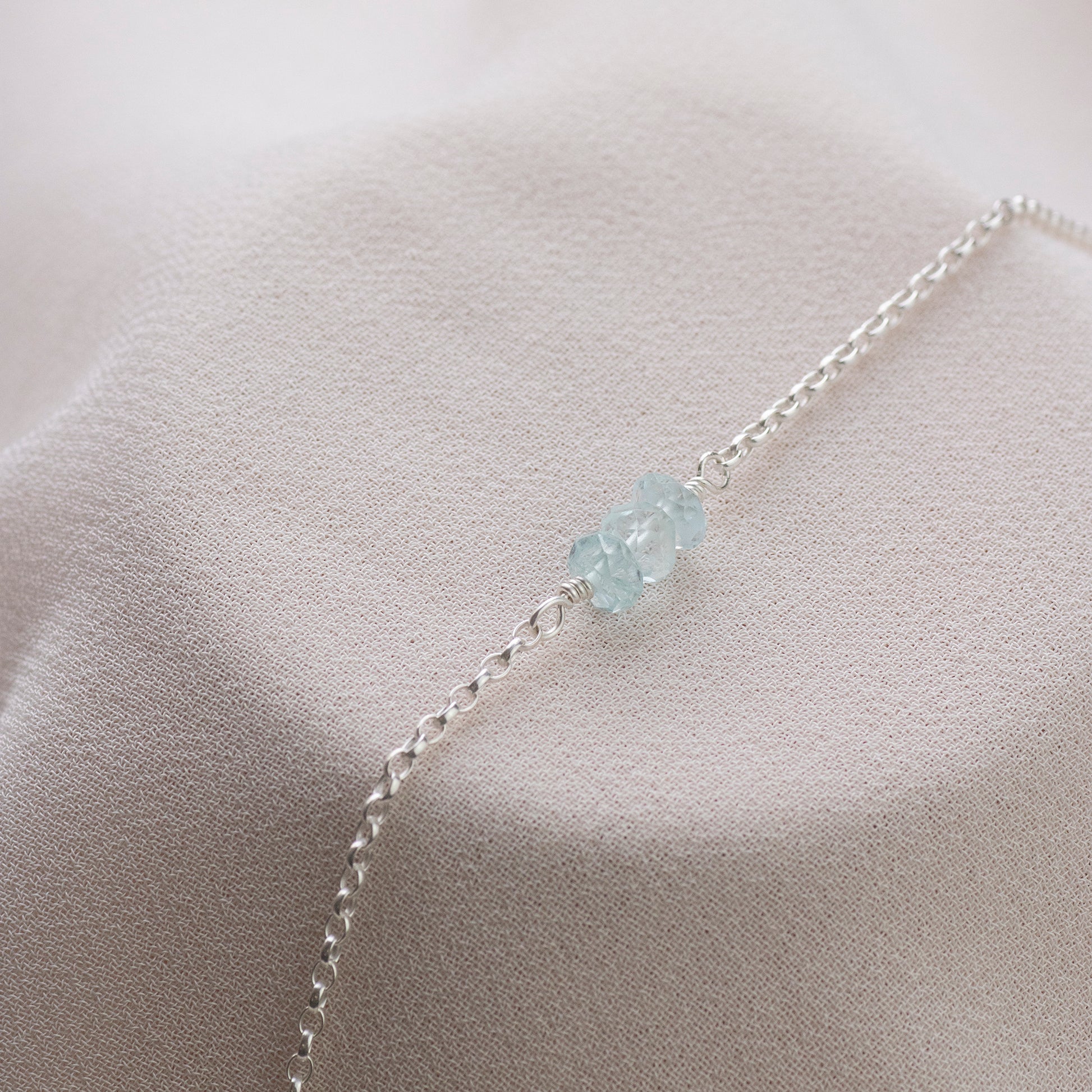 Handmade to order with blue topaz stones, which symbolise love and loyalty and either sterling silver or 14k gold-fill chain.