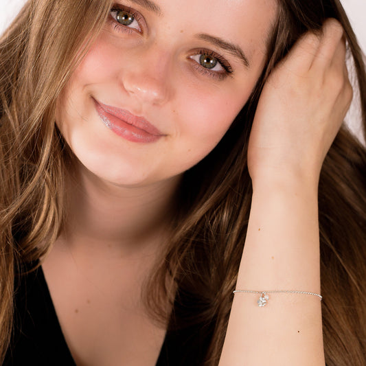 February Birth Flower Bracelet - Violet & Pearl - Silver