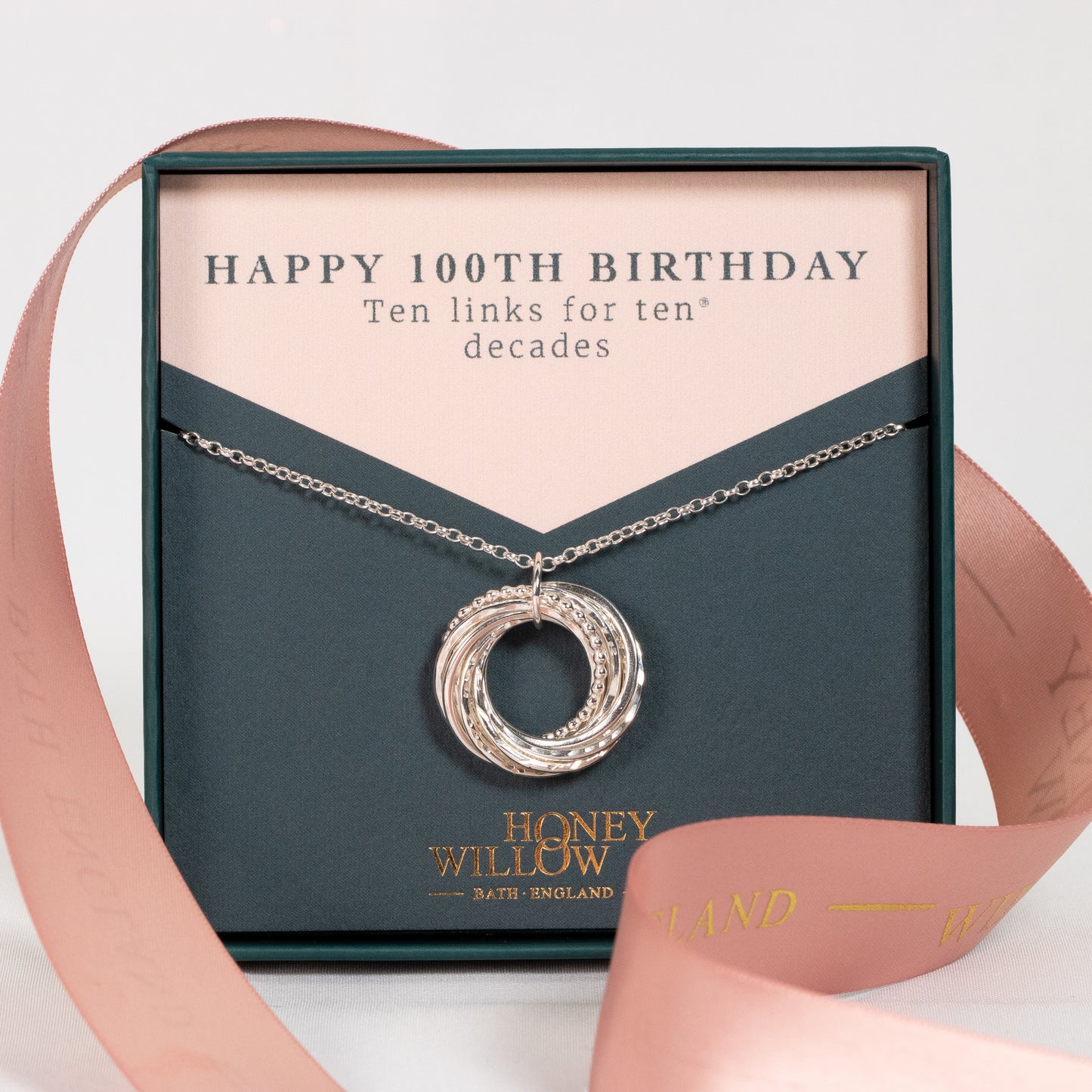 100th Birthday Necklace - The Original 10 Links for 10 Decades - Silver