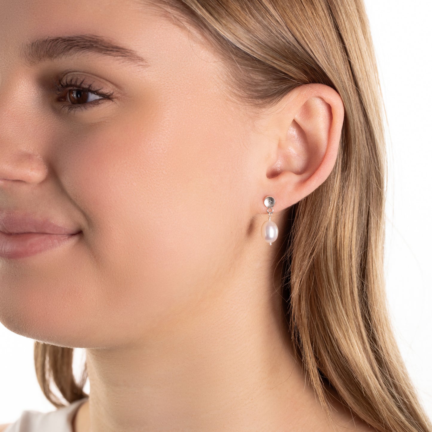 23rd Anniversary Gift - White Topaz & Pearl Earrings