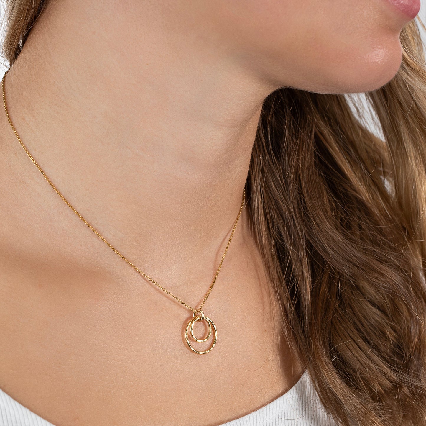 Remind her that she is forever encircled with love with a 9kt gold double circle necklace.