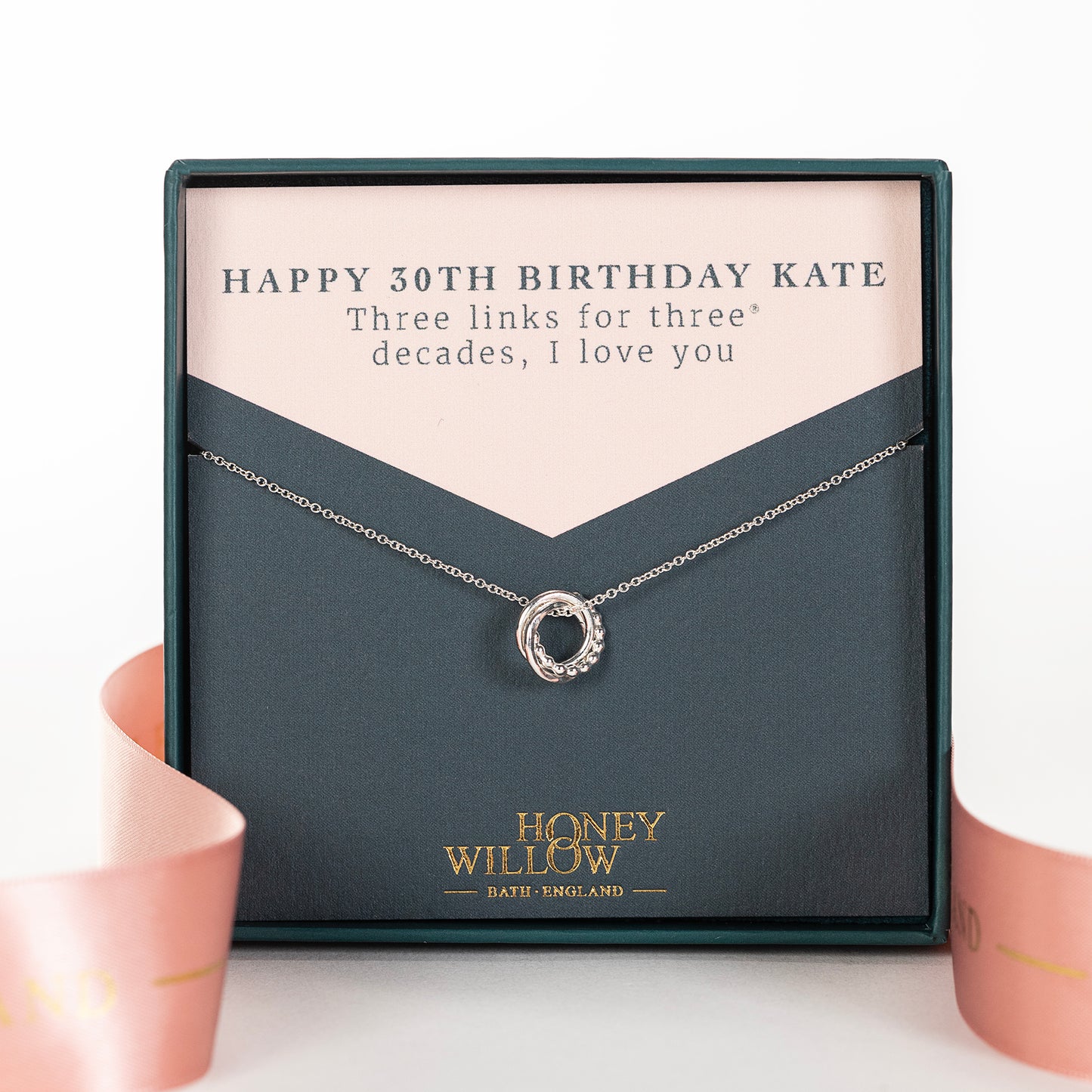 30th Birthday Necklace - The Original 3 Links for 3 Decades - Silver Love Knot