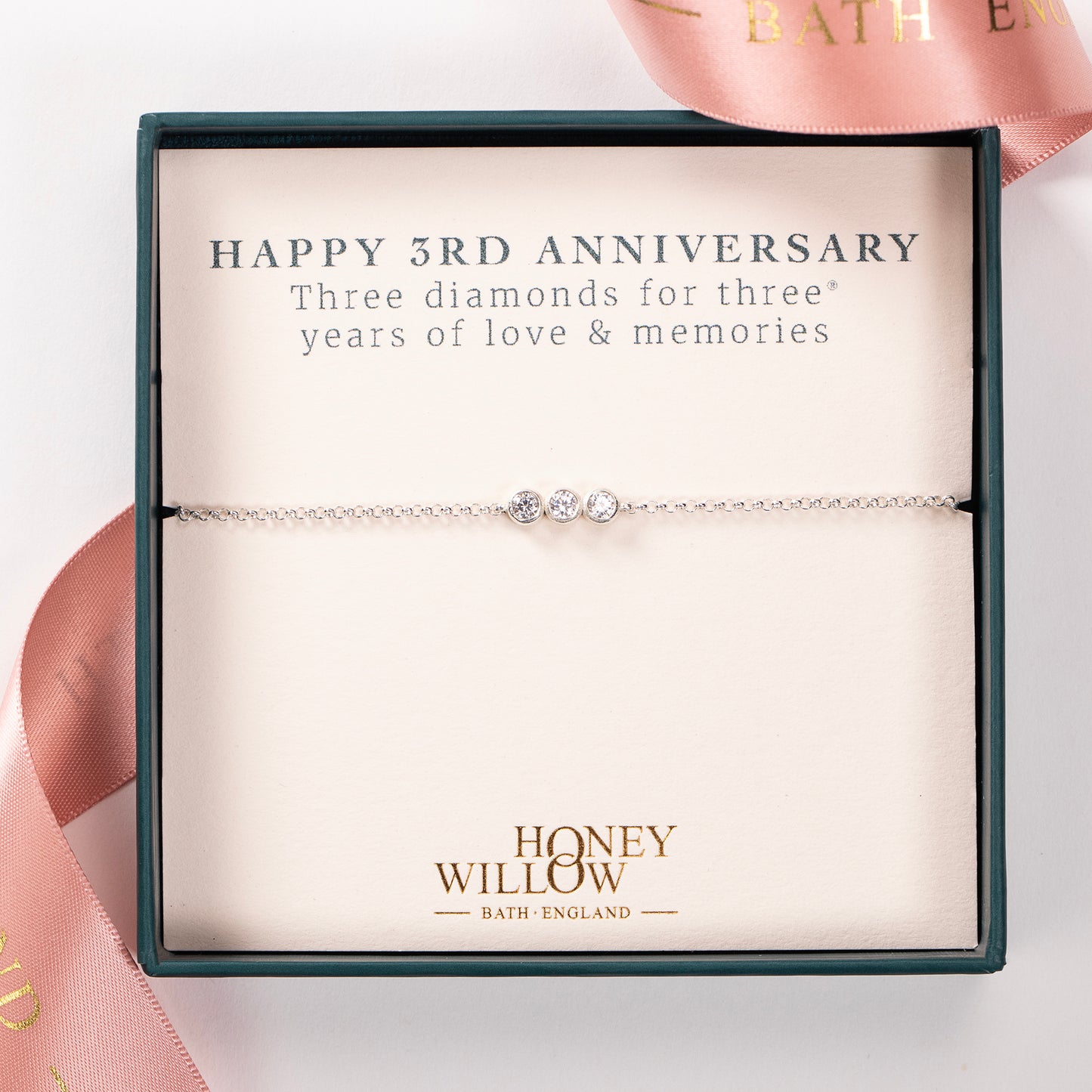 3rd Anniversary Gift - 3 Diamonds for 3® Years Bracelet