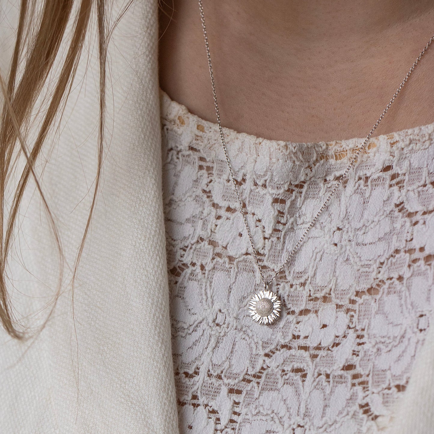 3rd Anniversary Gift - Sunflower Necklace - Silver