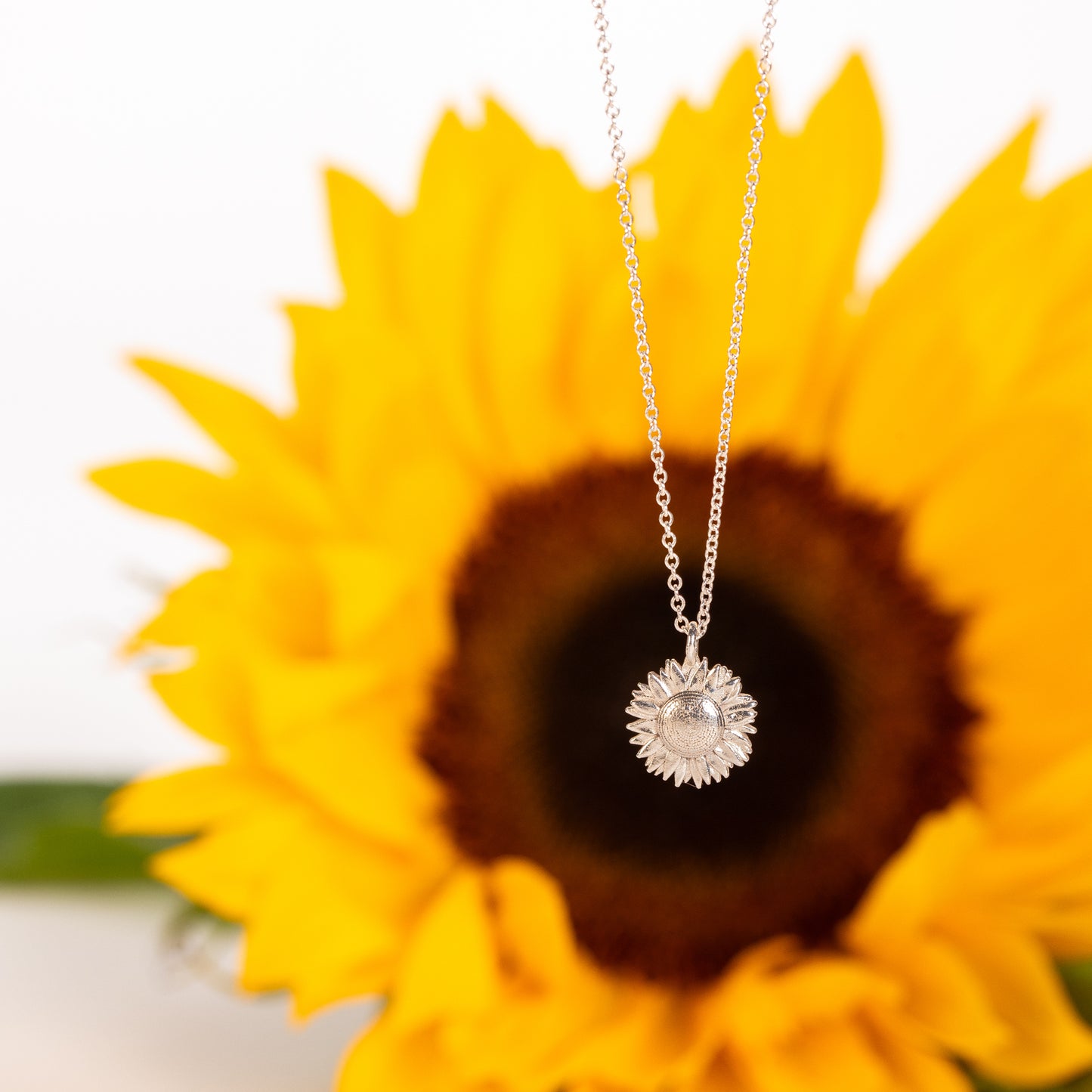 Celebrate your third anniversary with a unique sunflower necklace.