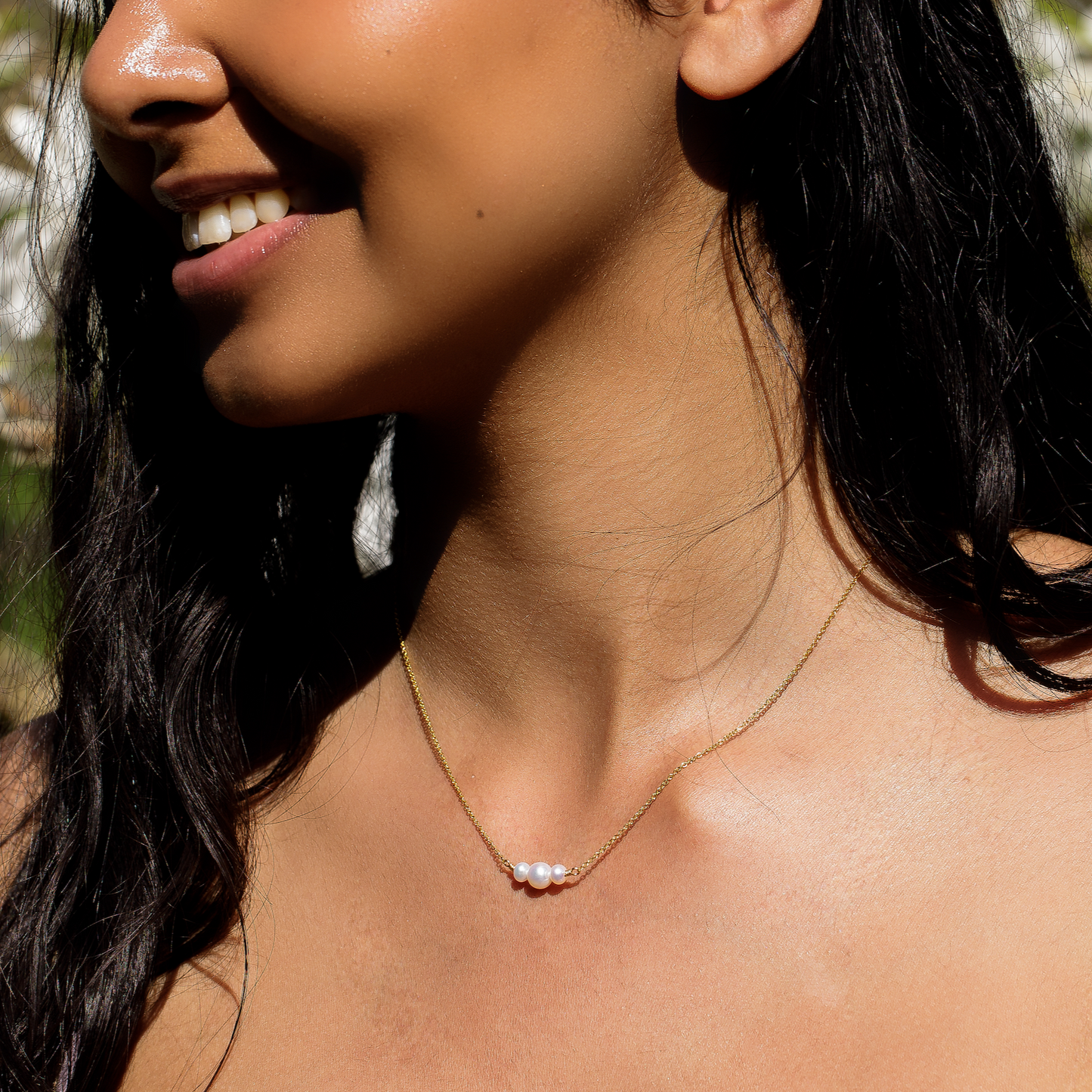 3rd Anniversary Necklace - Three Pearls for Three Years - Silver & Gold
