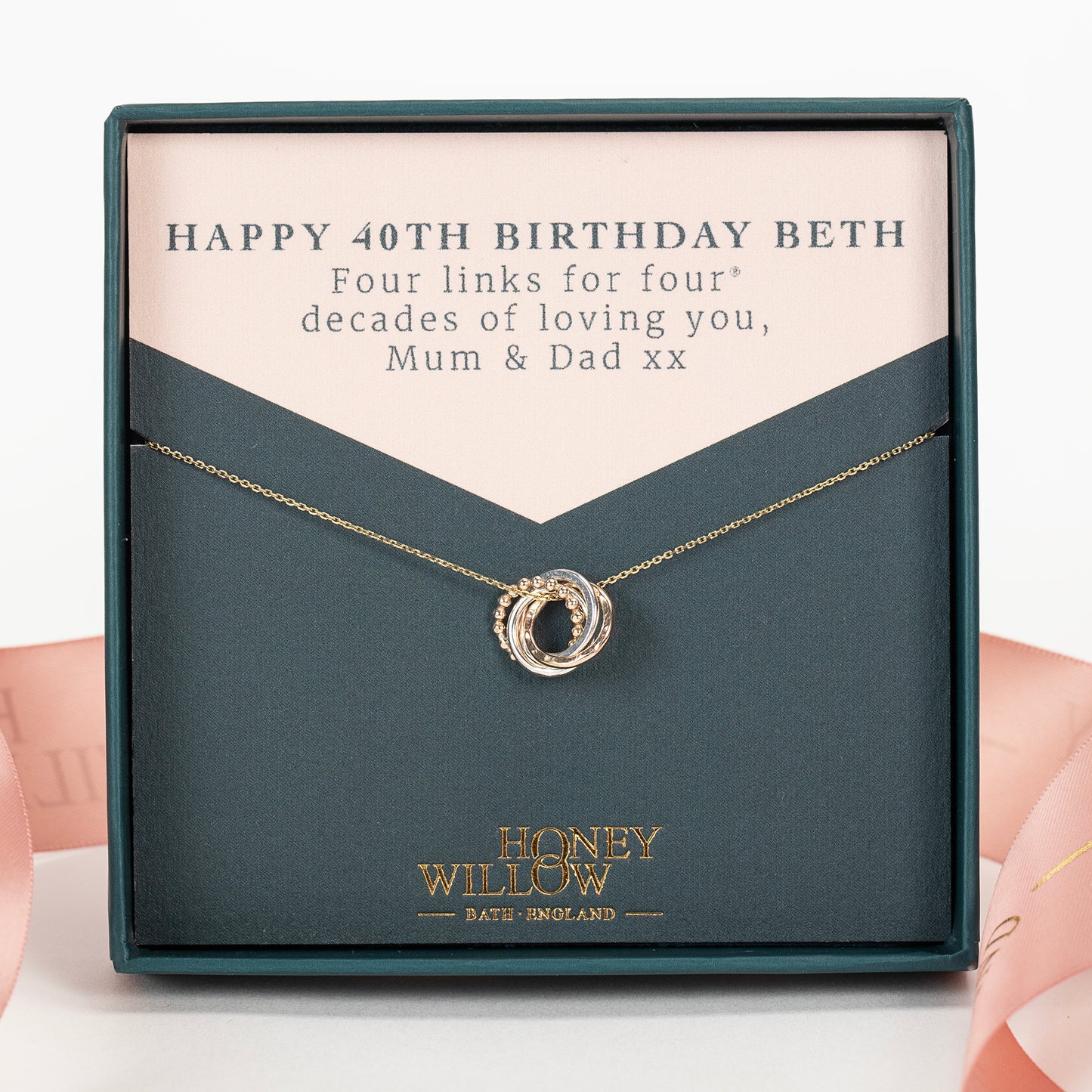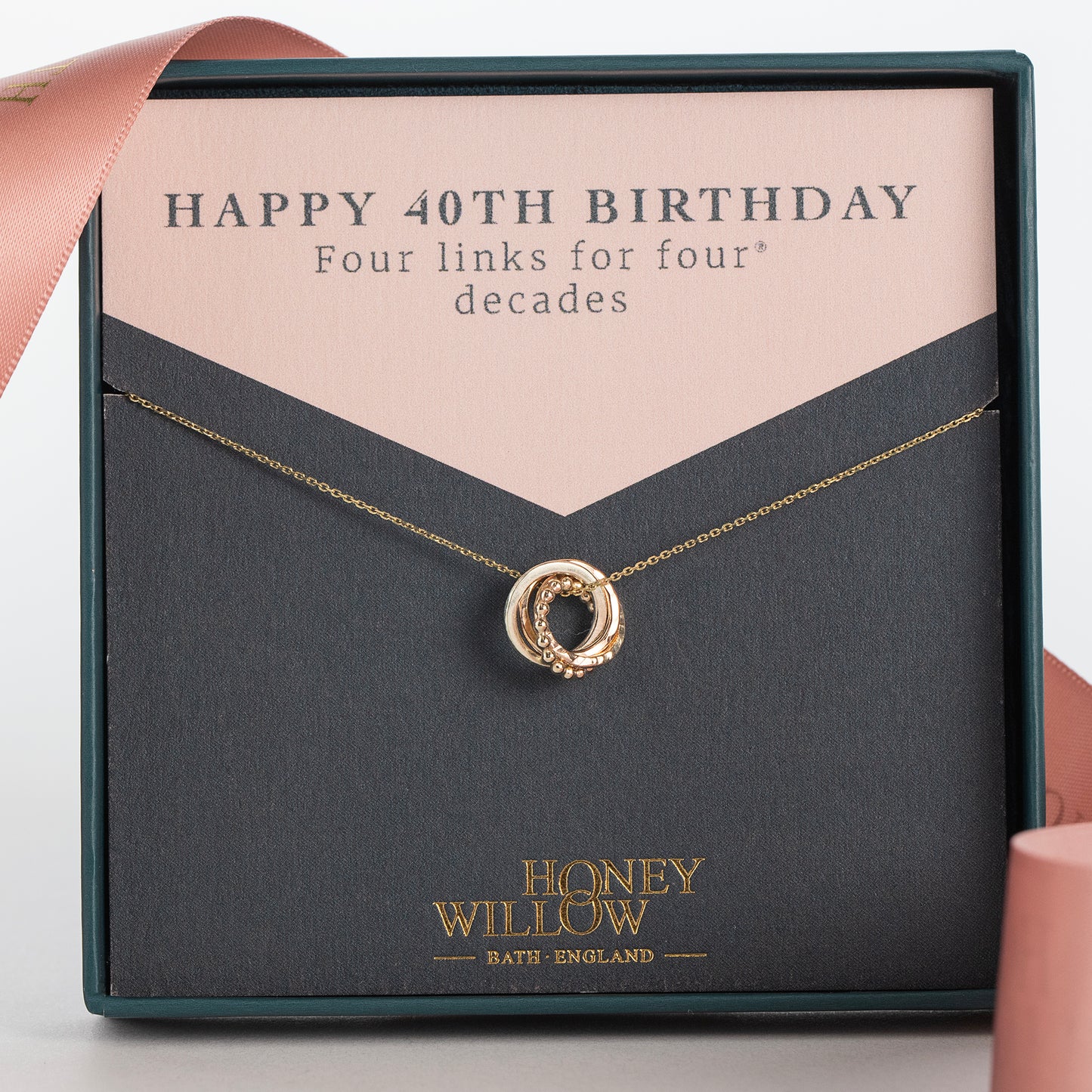 40th Birthday Love Knot - The Original 4 Links for 4 Decades Necklace - 9kt Gold, Rose Gold & White Gold