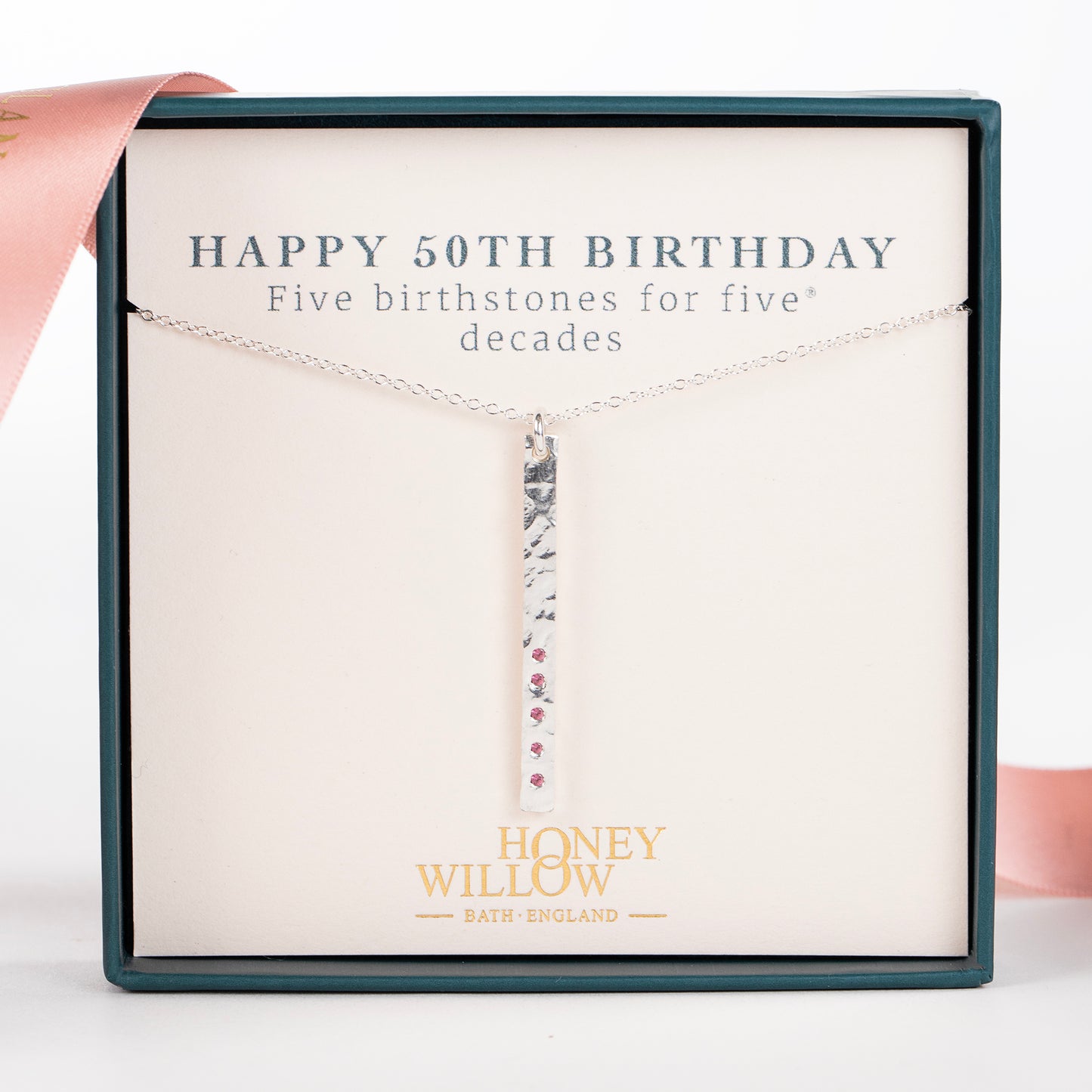 50th Birthday Necklace - 5 Birthstones For 5 Decades - Silver Column Necklace