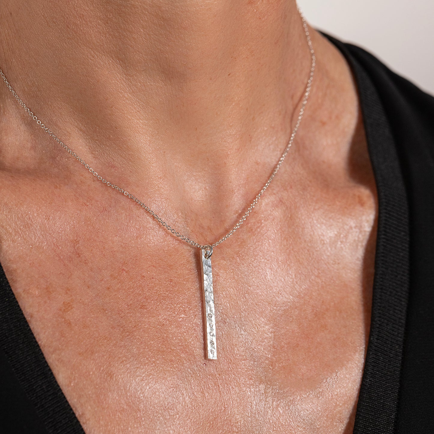 Celebrate her birthday with a silver column necklace, handmade with her birthstones - five birthstones for five® decades.