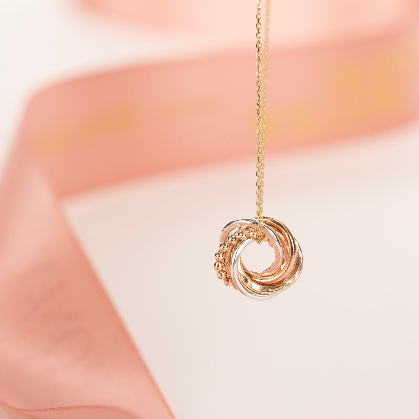 Handmade to order with recycled 9kt rose gold, recycled 9kt yellow gold and recycled white gold. The pendant is hallmarked as 9kt gold.