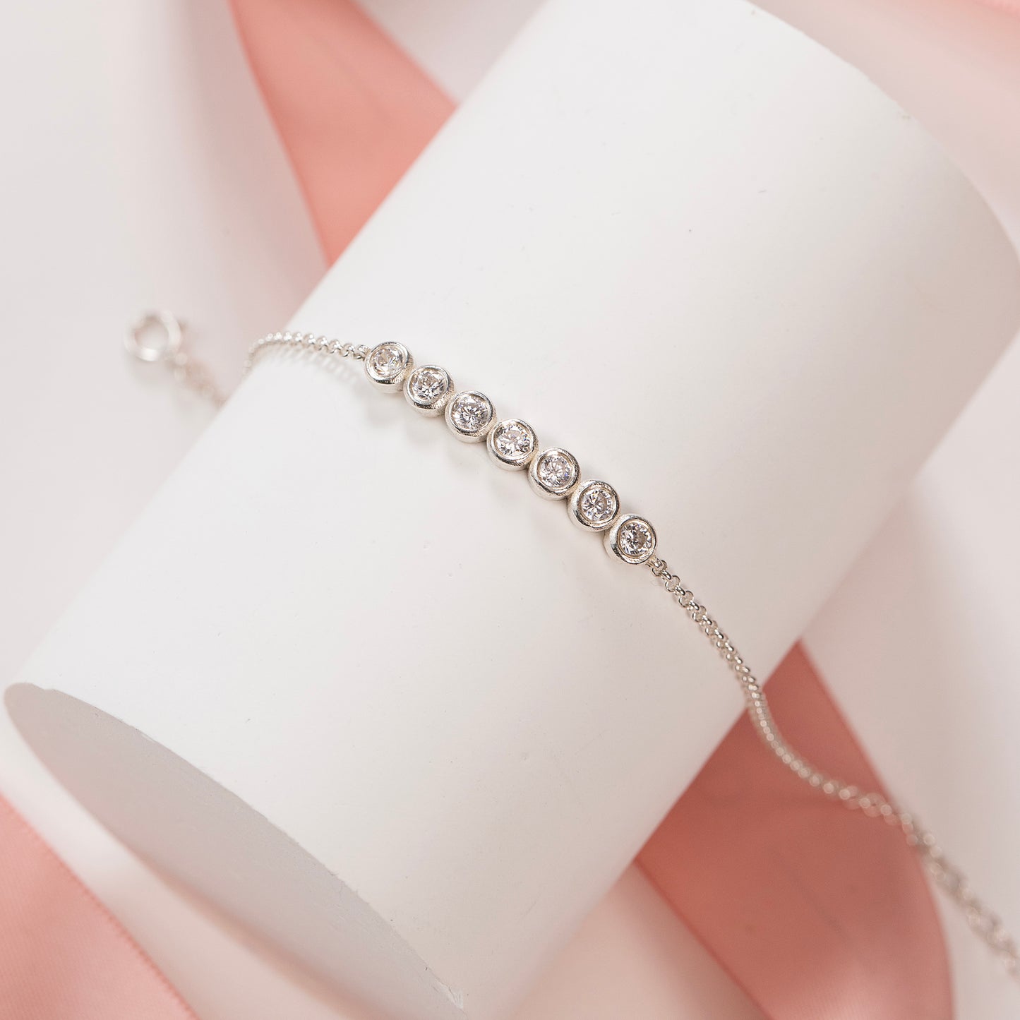 7th Anniversary Bracelet - 7 Diamonds for 7 Years - Lab Grown Diamonds - Silver