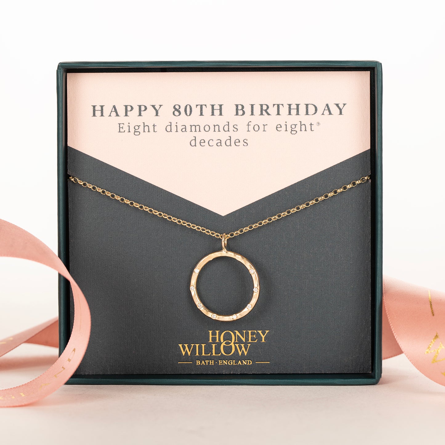Celebrate her milestone 80th birthday with a 9kt gold halo necklace, set with eight diamonds for eight® decades.