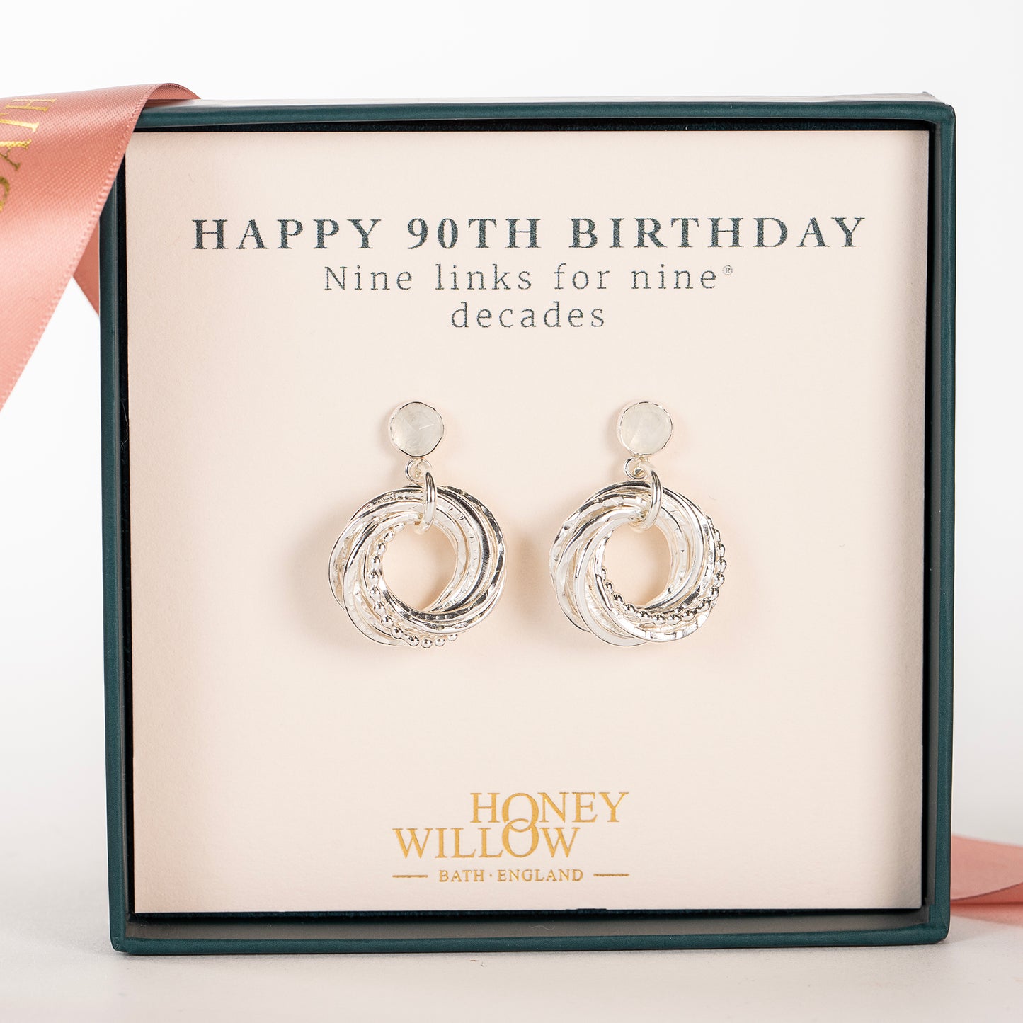 Give your loved one the original nine links for nine® decades earrings, designed and handmade in England with love and care for over a decade.