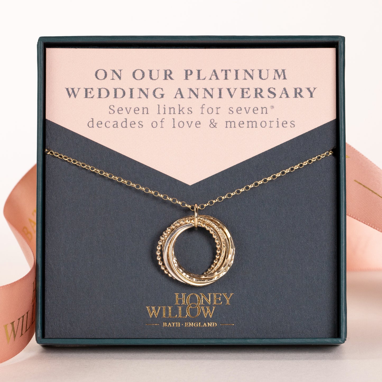 9kt Gold 70th Anniversary Necklace - The Original 7 Links for 7 Decades Necklace - Recycled Gold & Platinum