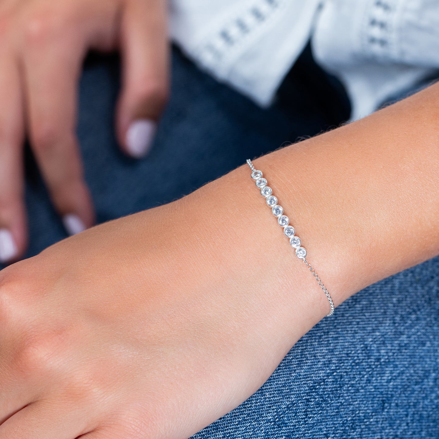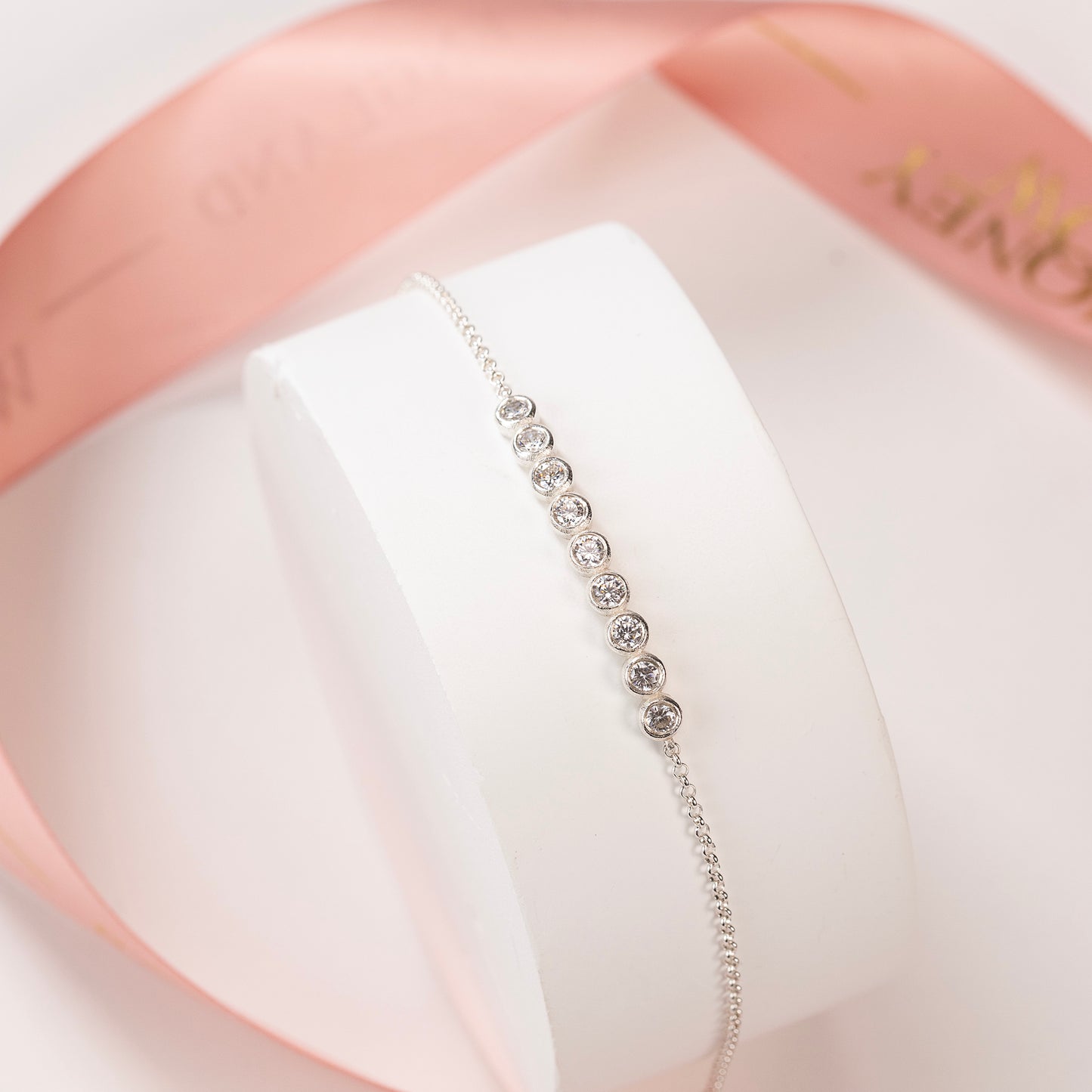 9th Anniversary Bracelet - 9 Diamonds for 9 Years - Lab Grown Diamonds - Silver