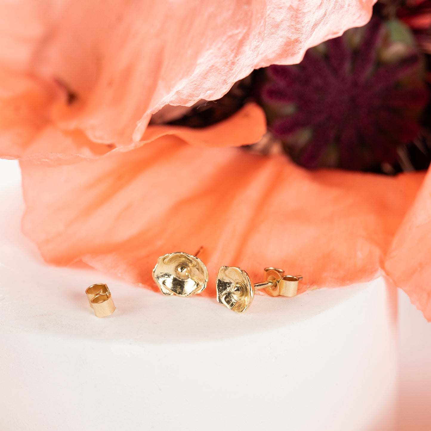 9th Anniversary Gift - Poppy Flower Stud Earrings - 9kt Gold