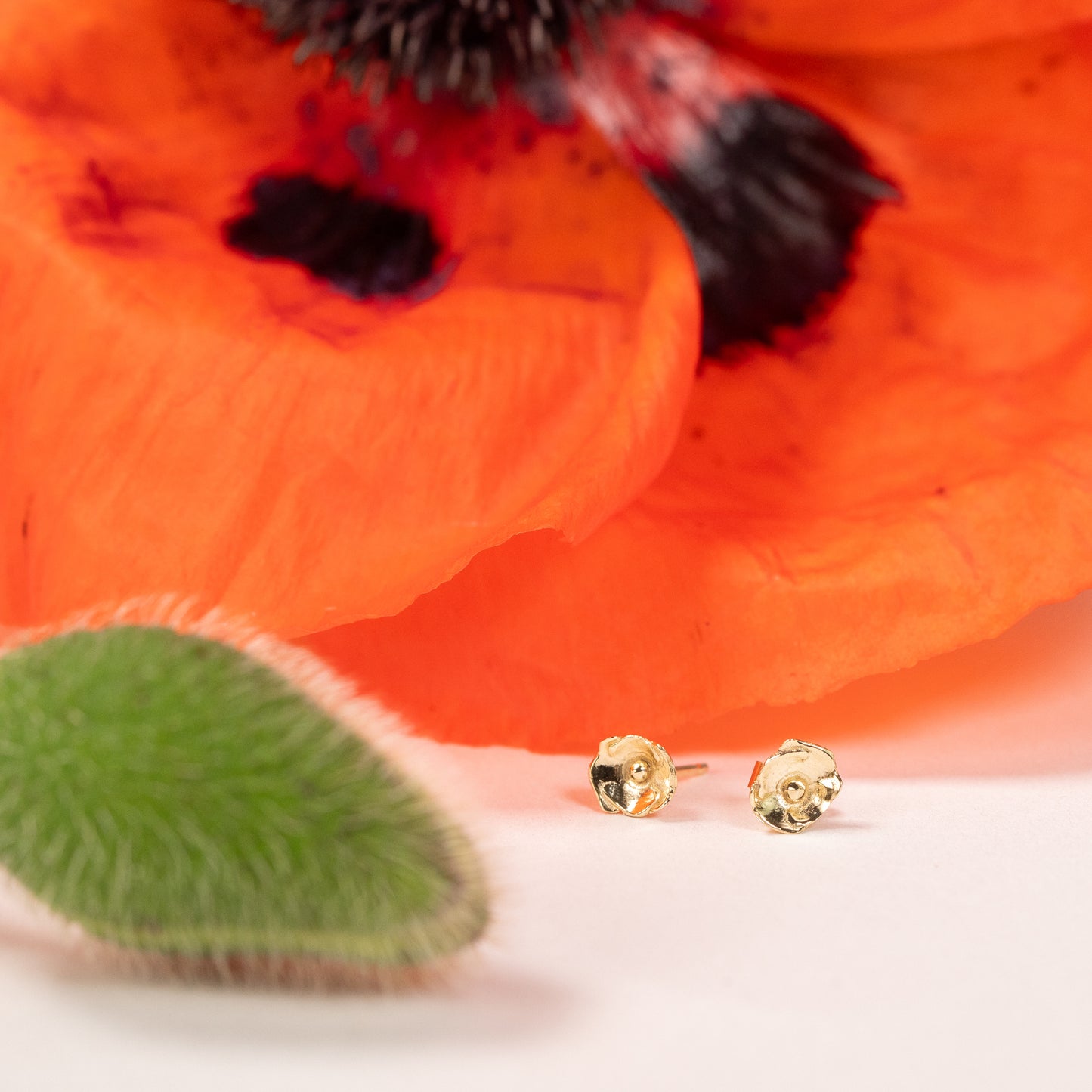The poppy studs are 5mm in diameter. They are made with recycled 9kt gold and hallmarked at the London Assay Office.