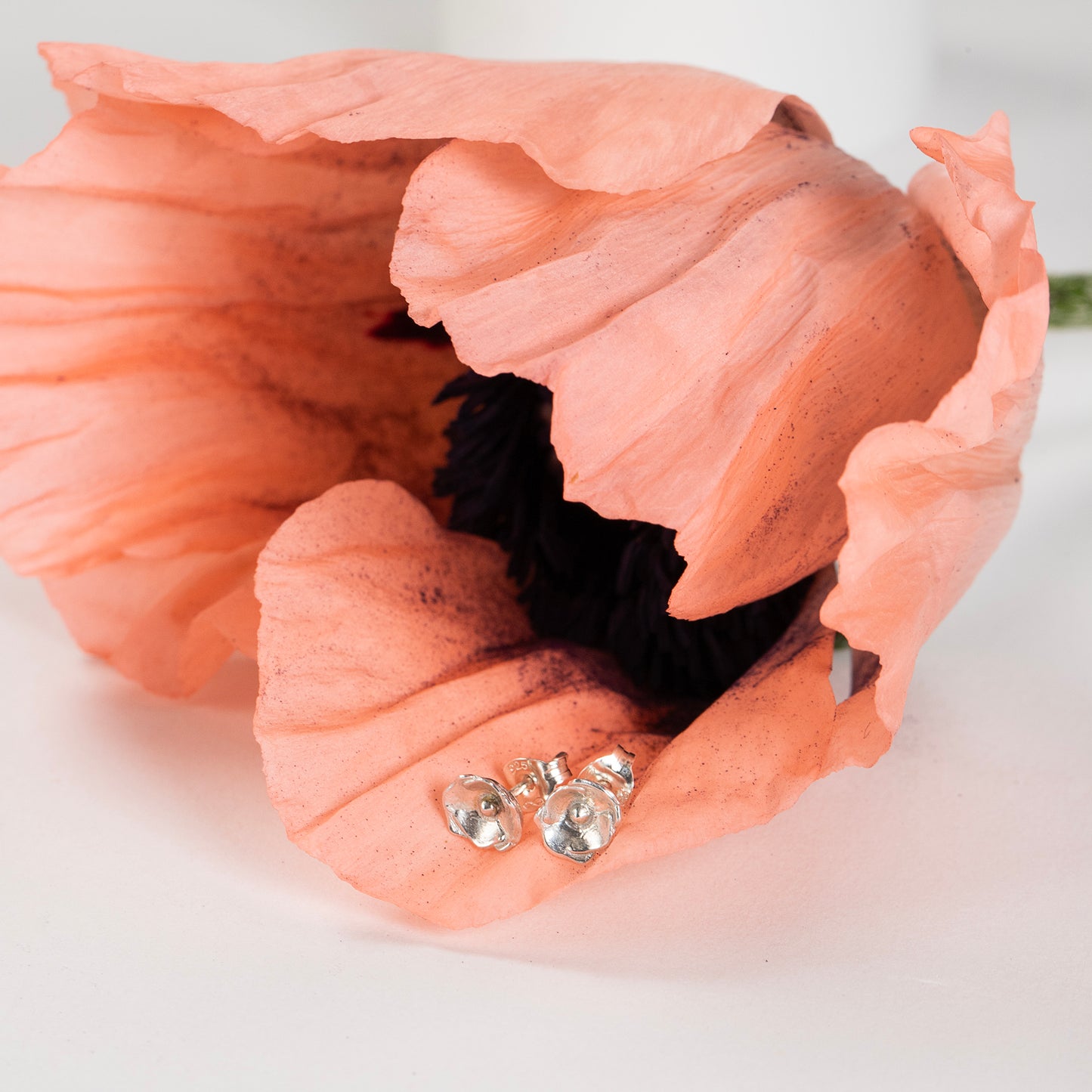 The poppy studs are 5mm in diameter. They are made with recycled silver.