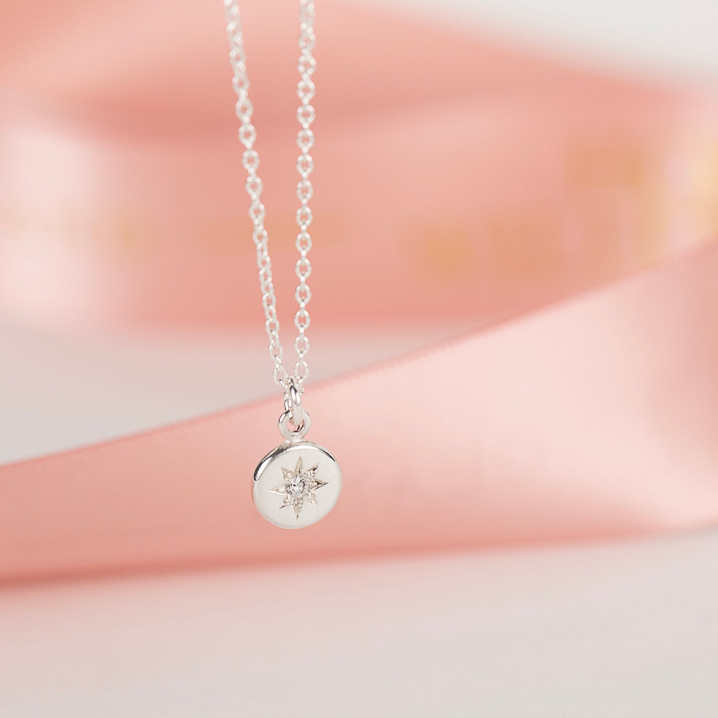 April Birthstone Necklace - Lab-Grown Diamond Star Set Pendant - Silver